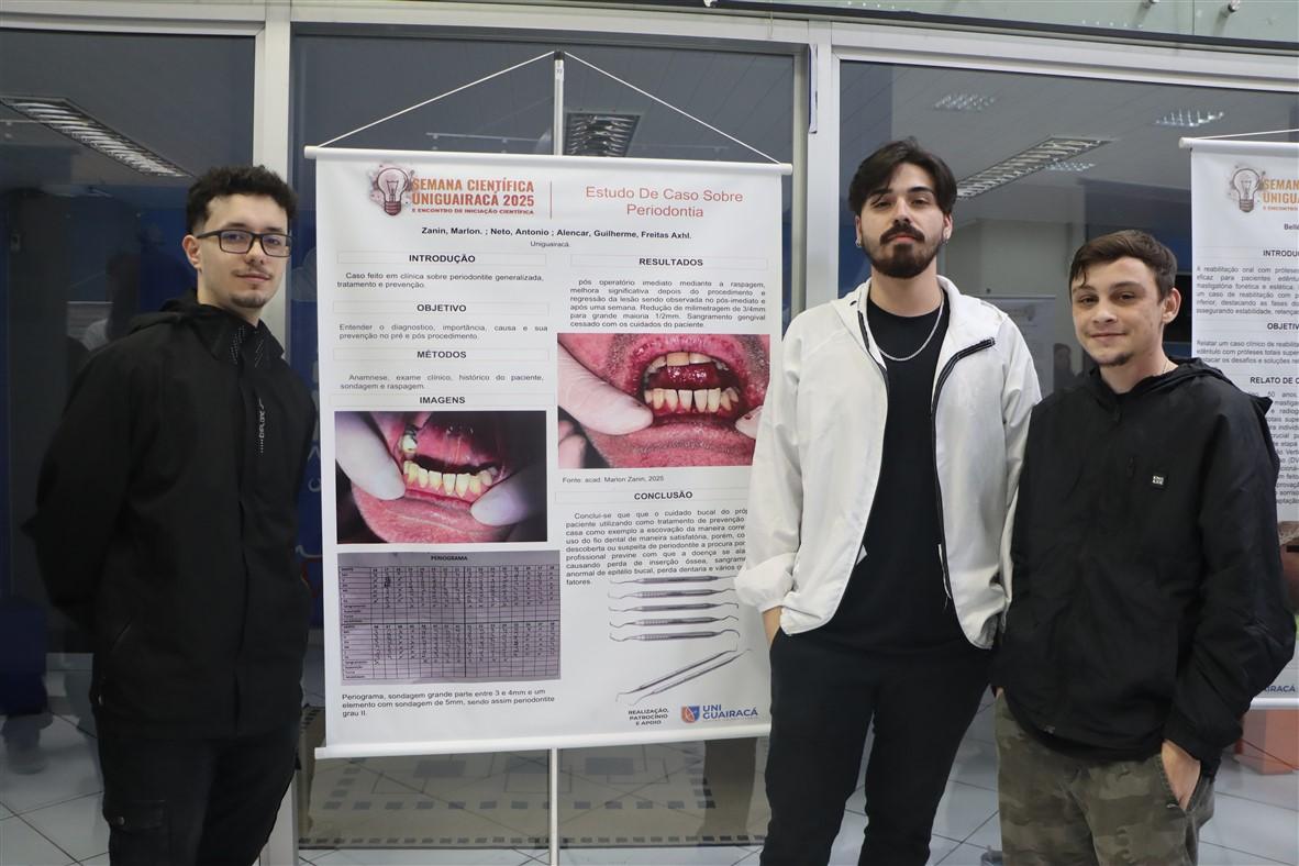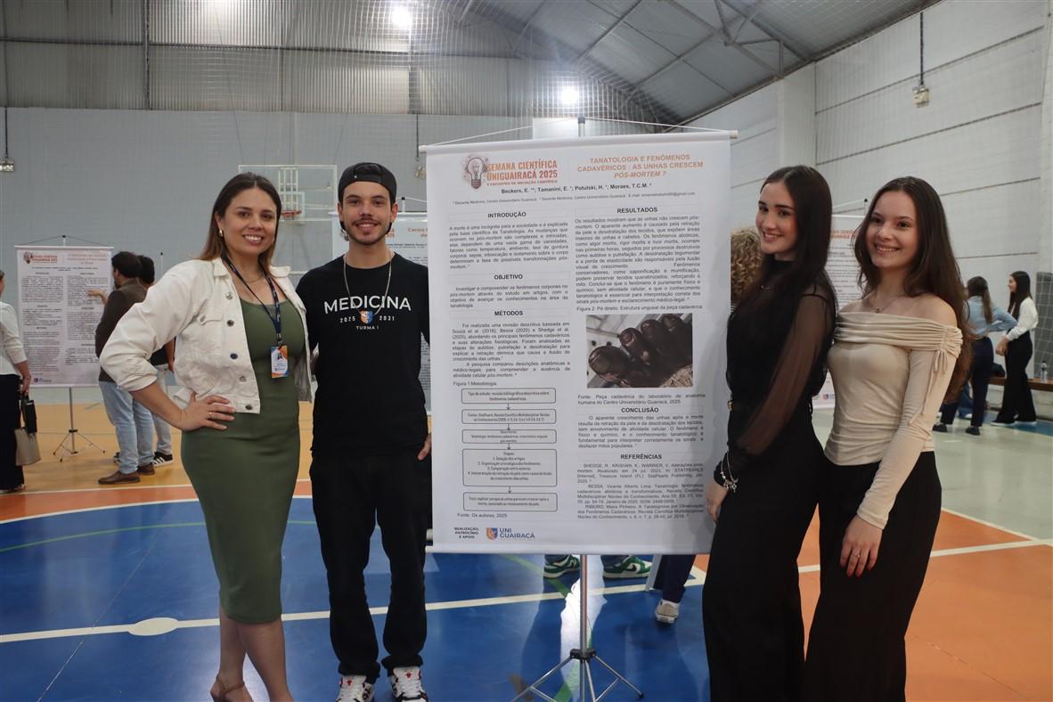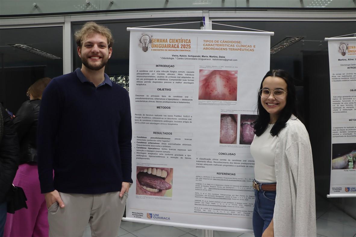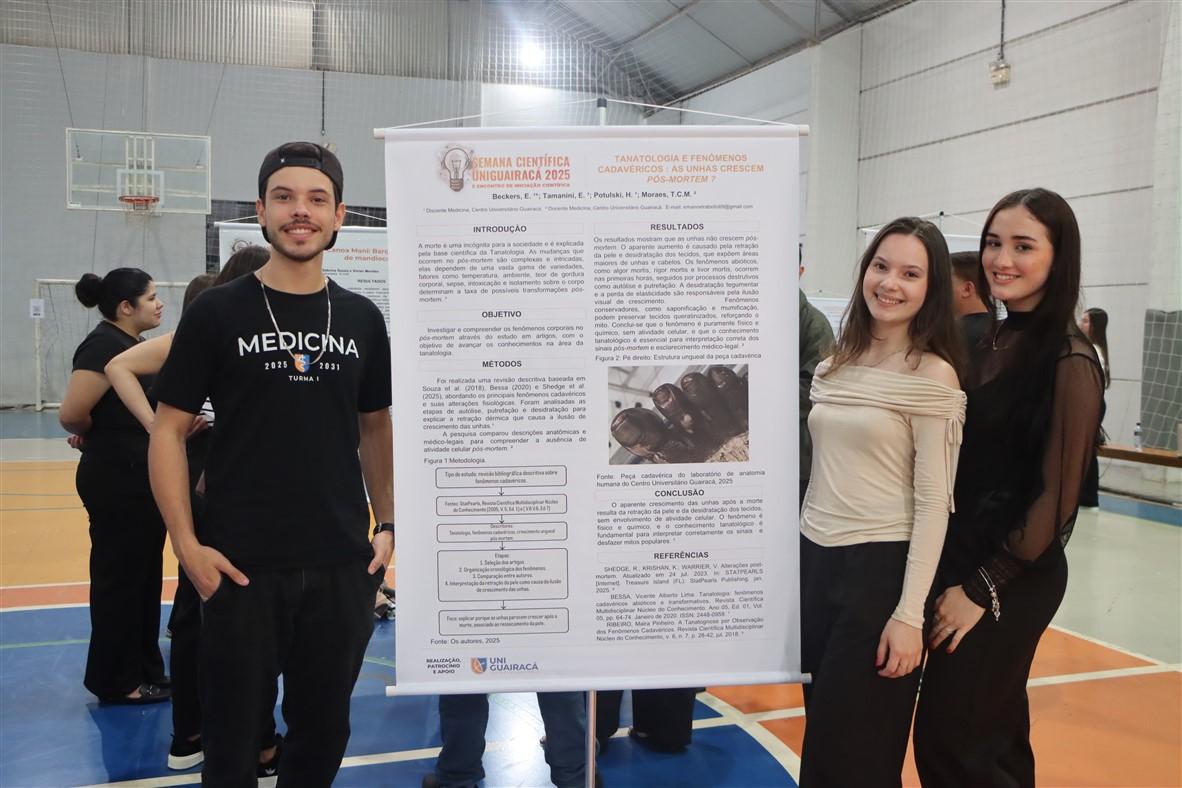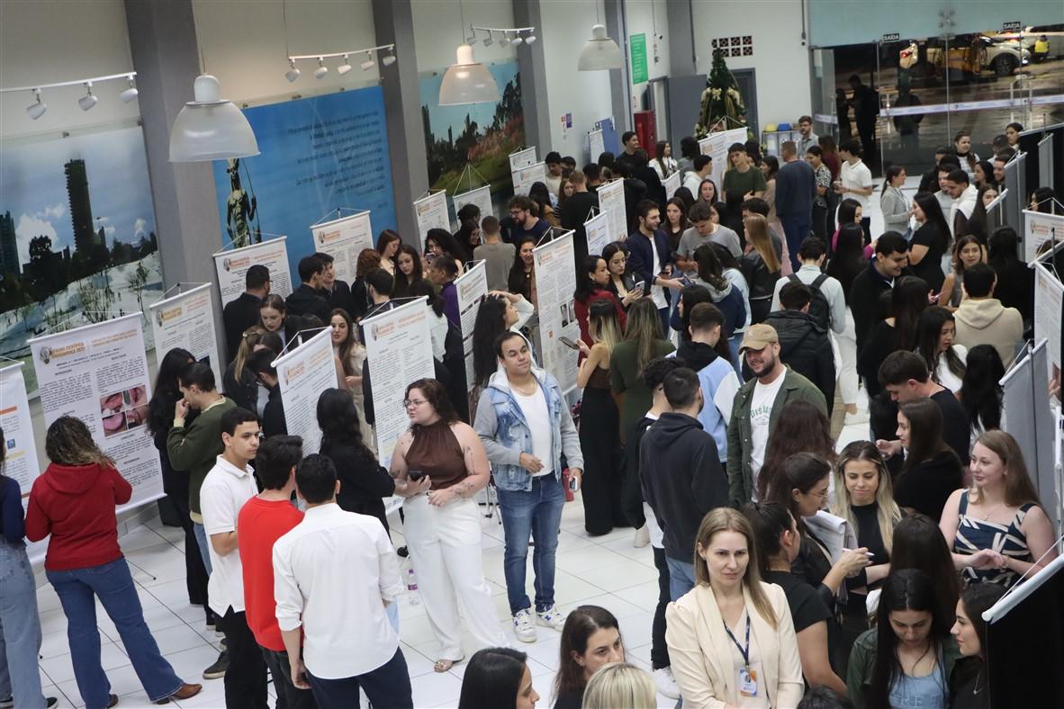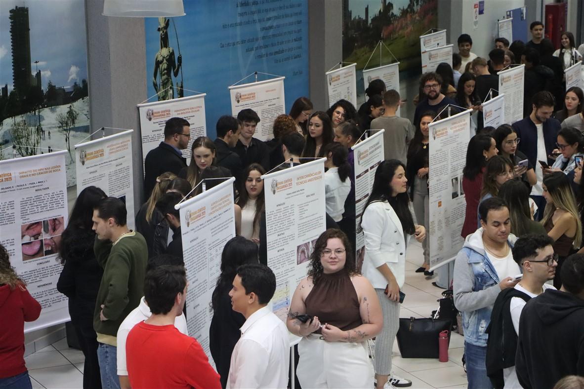 Na exposição dos banners do Encontro de Iniciação Científica há muitas pesquisas inovadoras. Os acadêmicos do curso de Medicina estão participando pela primeira vez do evento e já trouxeram grandes pesquisas realizadas no primeiro semestres. “Esse evento é uma forma de a gente trazer o aluno para dentro do mundo científico, sair da sala de aula e incomodar, no sentido de buscar conhecimento. Às vezes a gente fornece tanto conteúdo em sala que acaba deixando eles mais acomodados. Por isso esse tipo de evento faz com que eles busquem mais informações, vão atrás e tragam inovações. Então está sendo muito bacana e bem valioso”, comenta a professora Drielle Strugal.