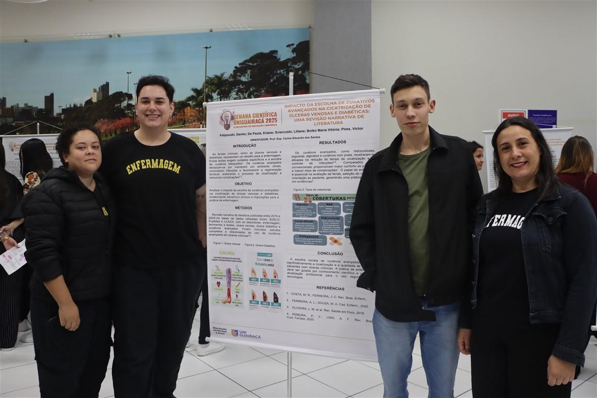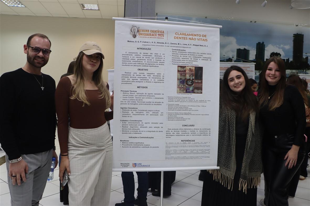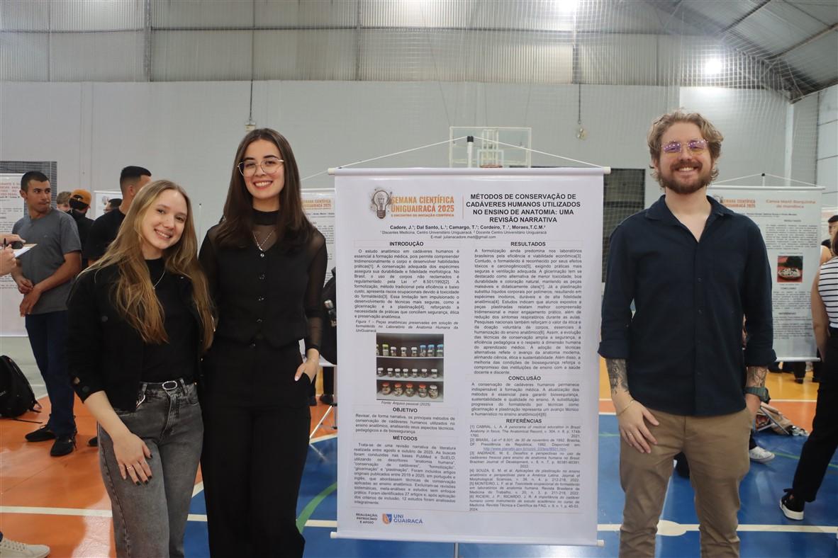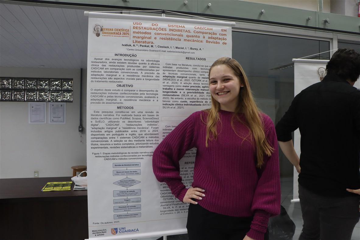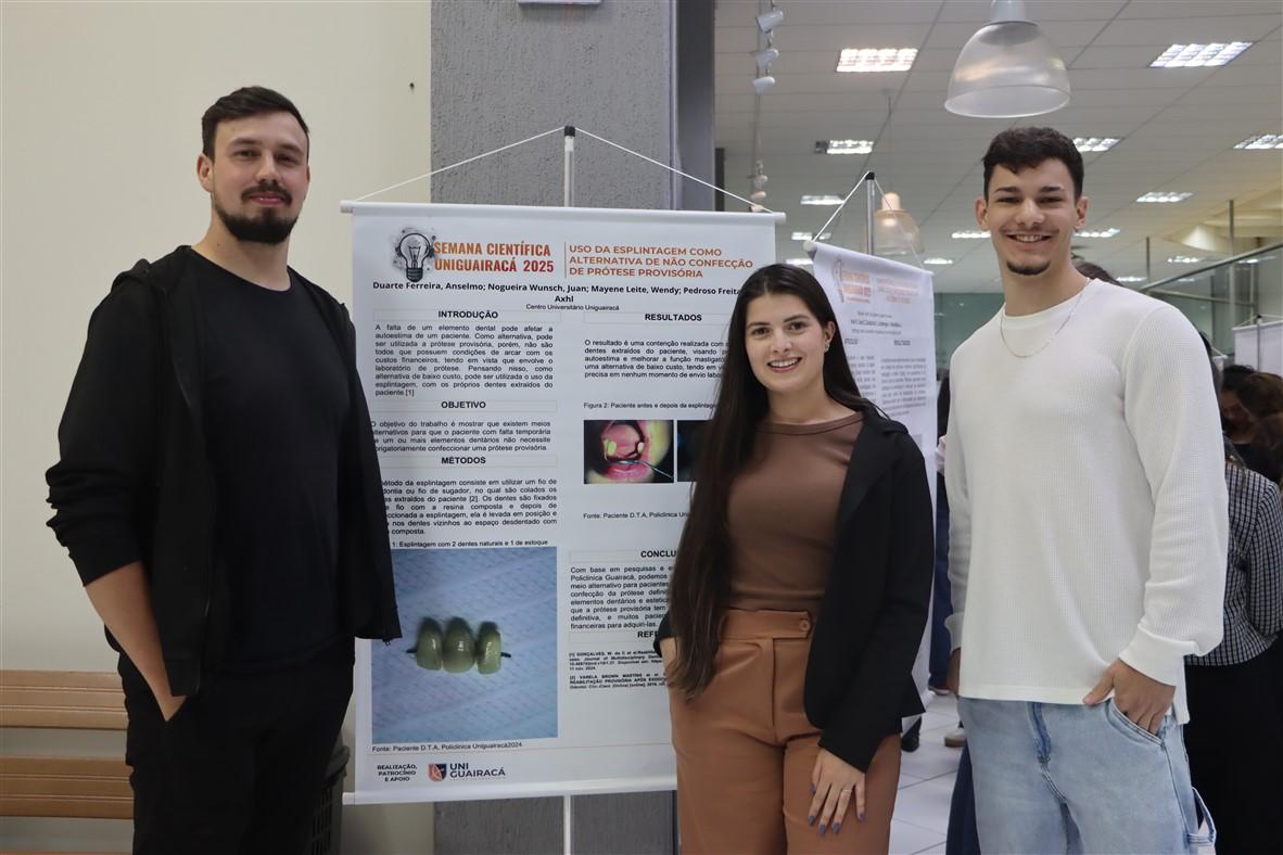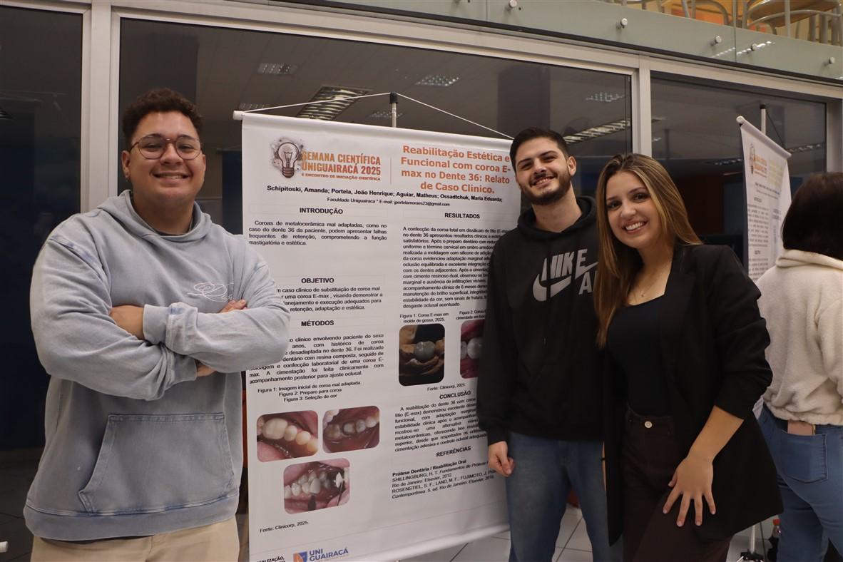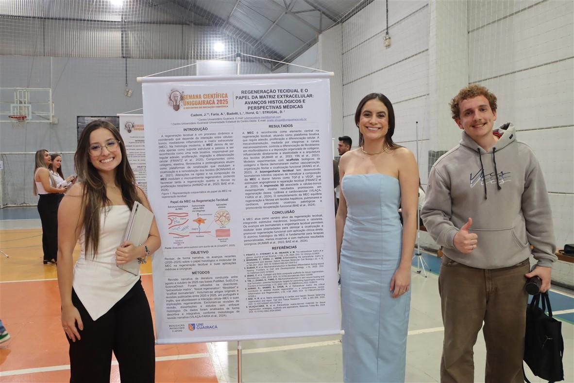 Na exposição dos banners do Encontro de Iniciação Científica há muitas pesquisas inovadoras. Os acadêmicos do curso de Medicina estão participando pela primeira vez do evento e já trouxeram grandes pesquisas realizadas no primeiro semestres. “Esse evento é uma forma de a gente trazer o aluno para dentro do mundo científico, sair da sala de aula e incomodar, no sentido de buscar conhecimento. Às vezes a gente fornece tanto conteúdo em sala que acaba deixando eles mais acomodados. Por isso esse tipo de evento faz com que eles busquem mais informações, vão atrás e tragam inovações. Então está sendo muito bacana e bem valioso”, comenta a professora Drielle Strugal.