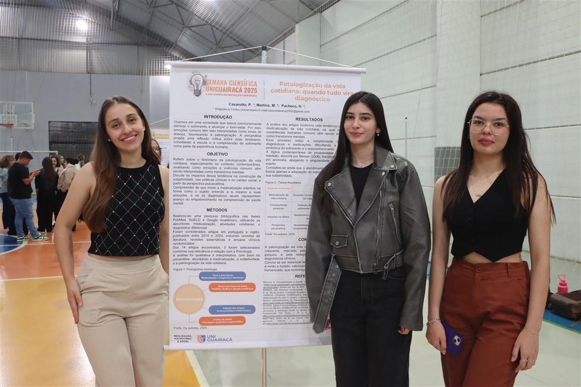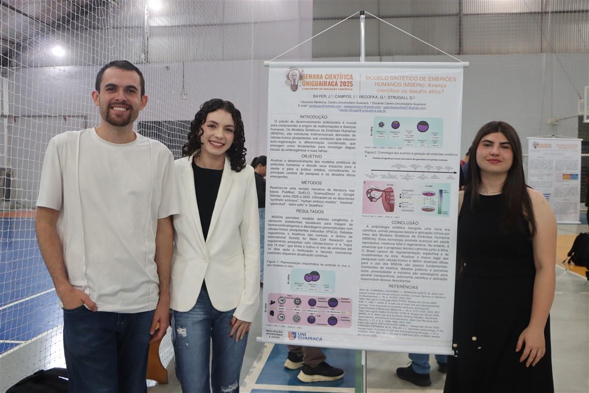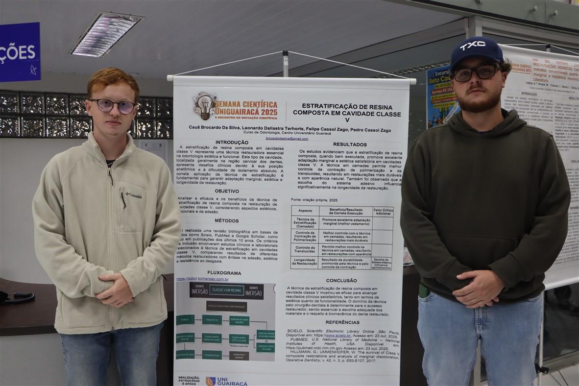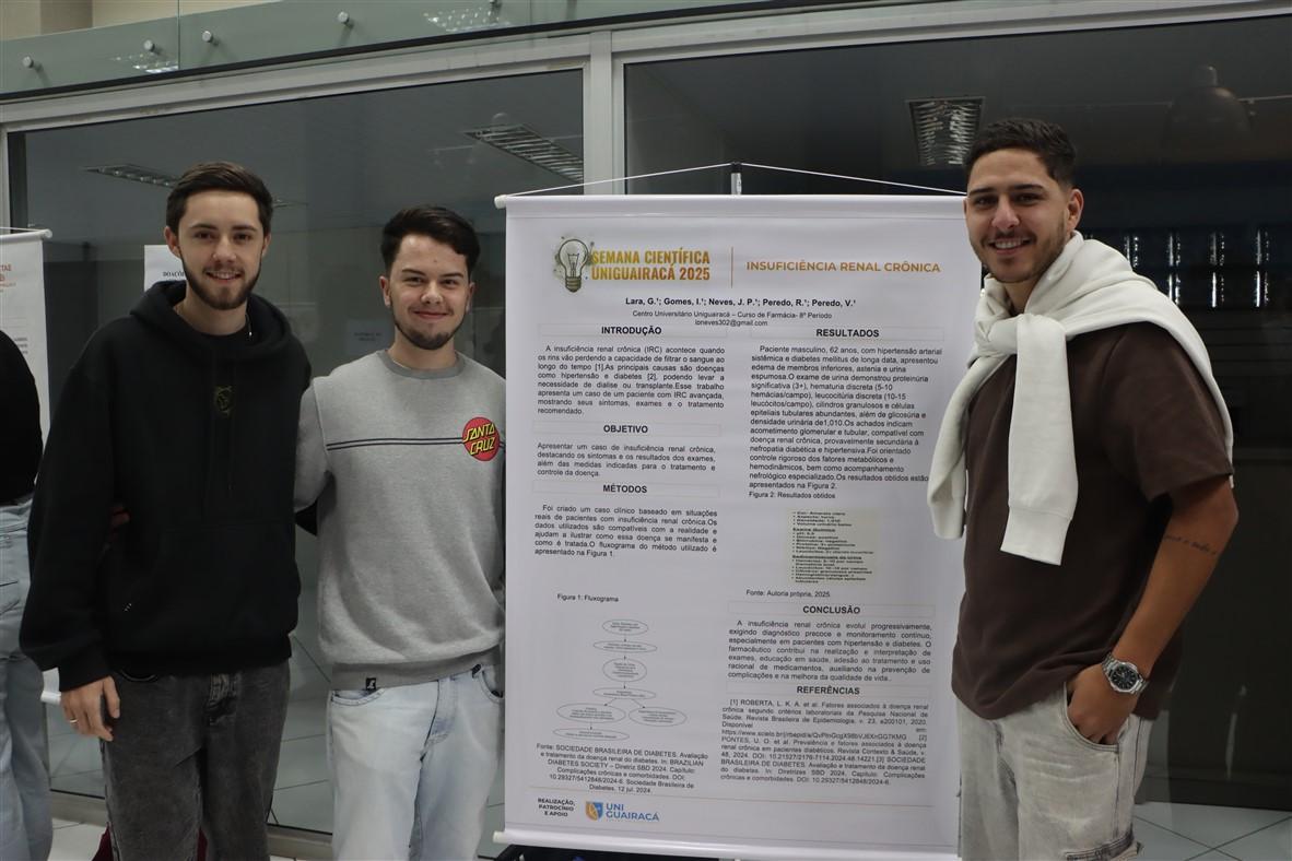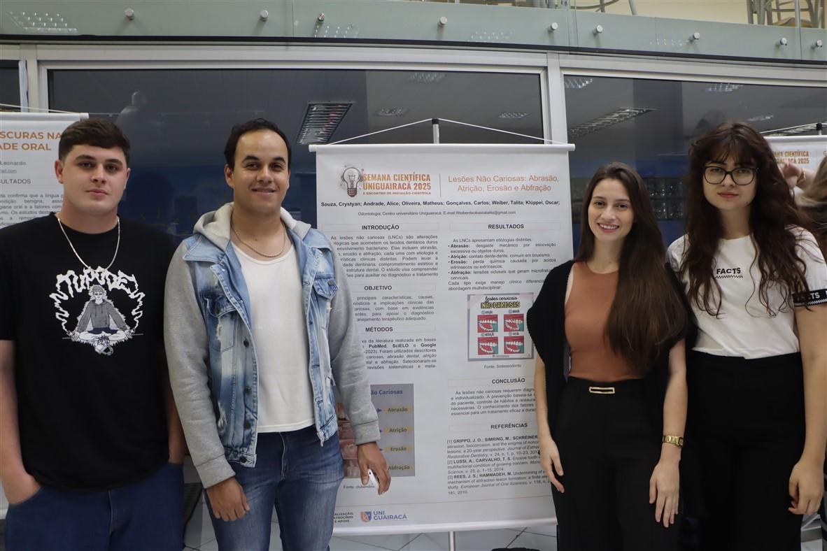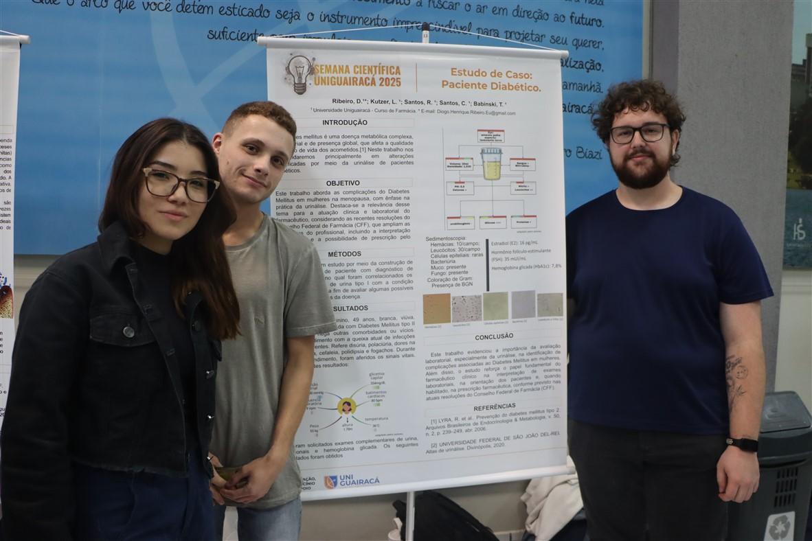 Na exposição dos banners do Encontro de Iniciação Científica há muitas pesquisas inovadoras. Os acadêmicos do curso de Medicina estão participando pela primeira vez do evento e já trouxeram grandes pesquisas realizadas no primeiro semestres. “Esse evento é uma forma de a gente trazer o aluno para dentro do mundo científico, sair da sala de aula e incomodar, no sentido de buscar conhecimento. Às vezes a gente fornece tanto conteúdo em sala que acaba deixando eles mais acomodados. Por isso esse tipo de evento faz com que eles busquem mais informações, vão atrás e tragam inovações. Então está sendo muito bacana e bem valioso”, comenta a professora Drielle Strugal.