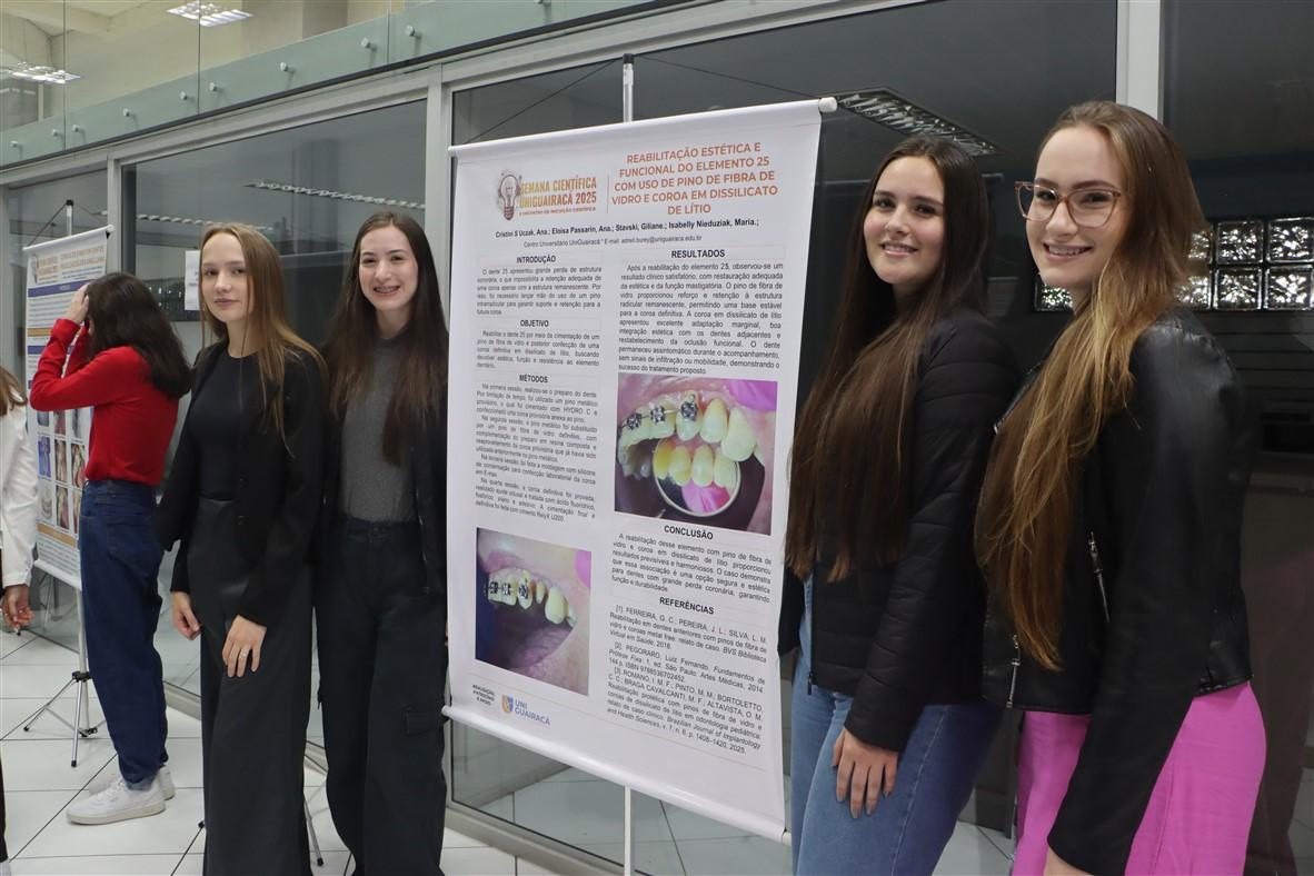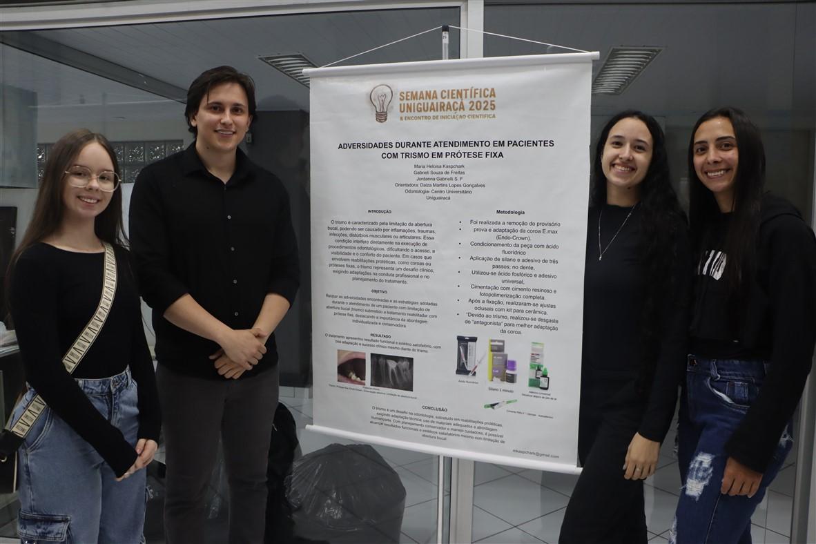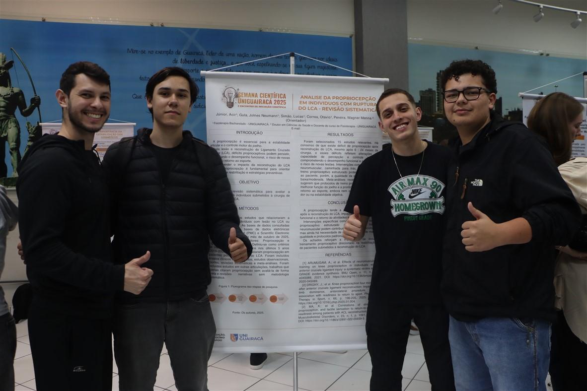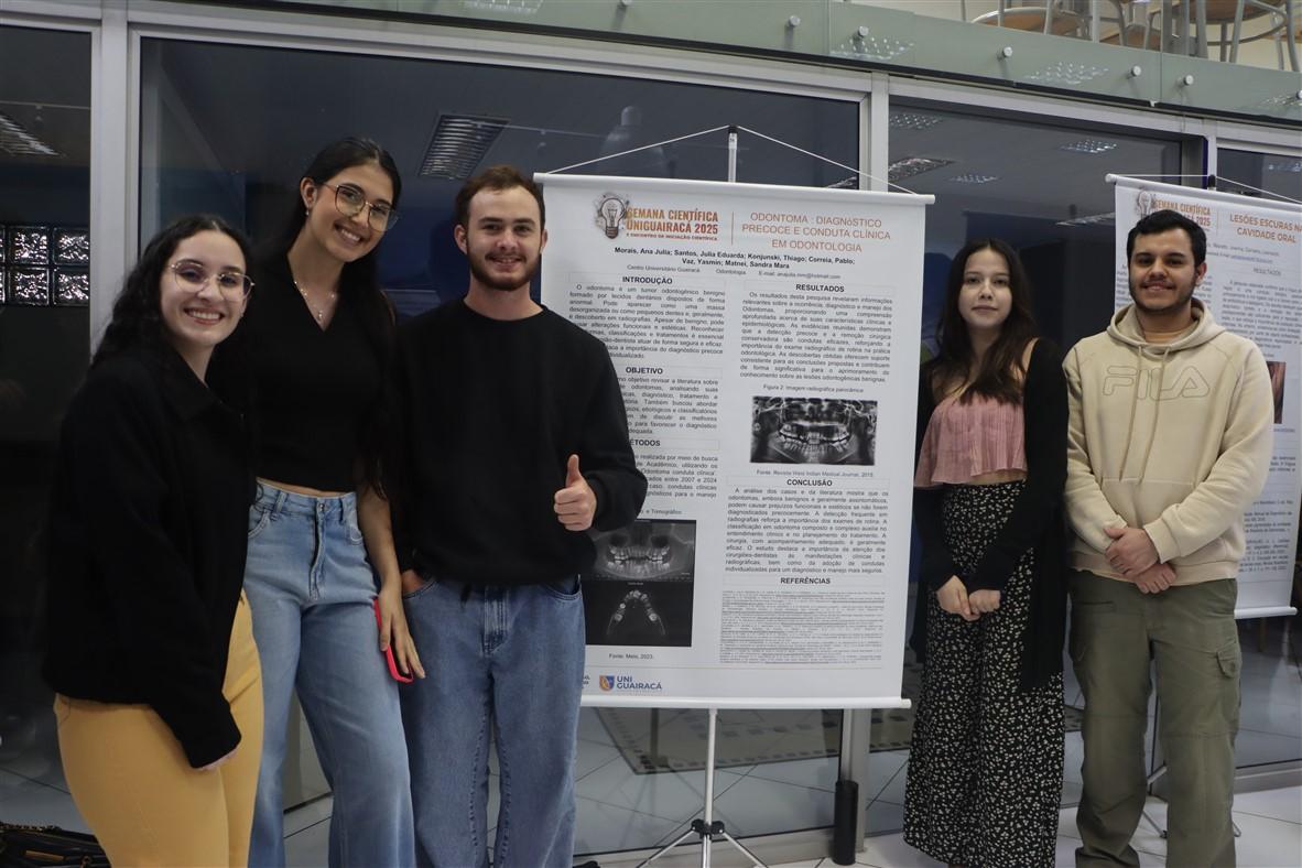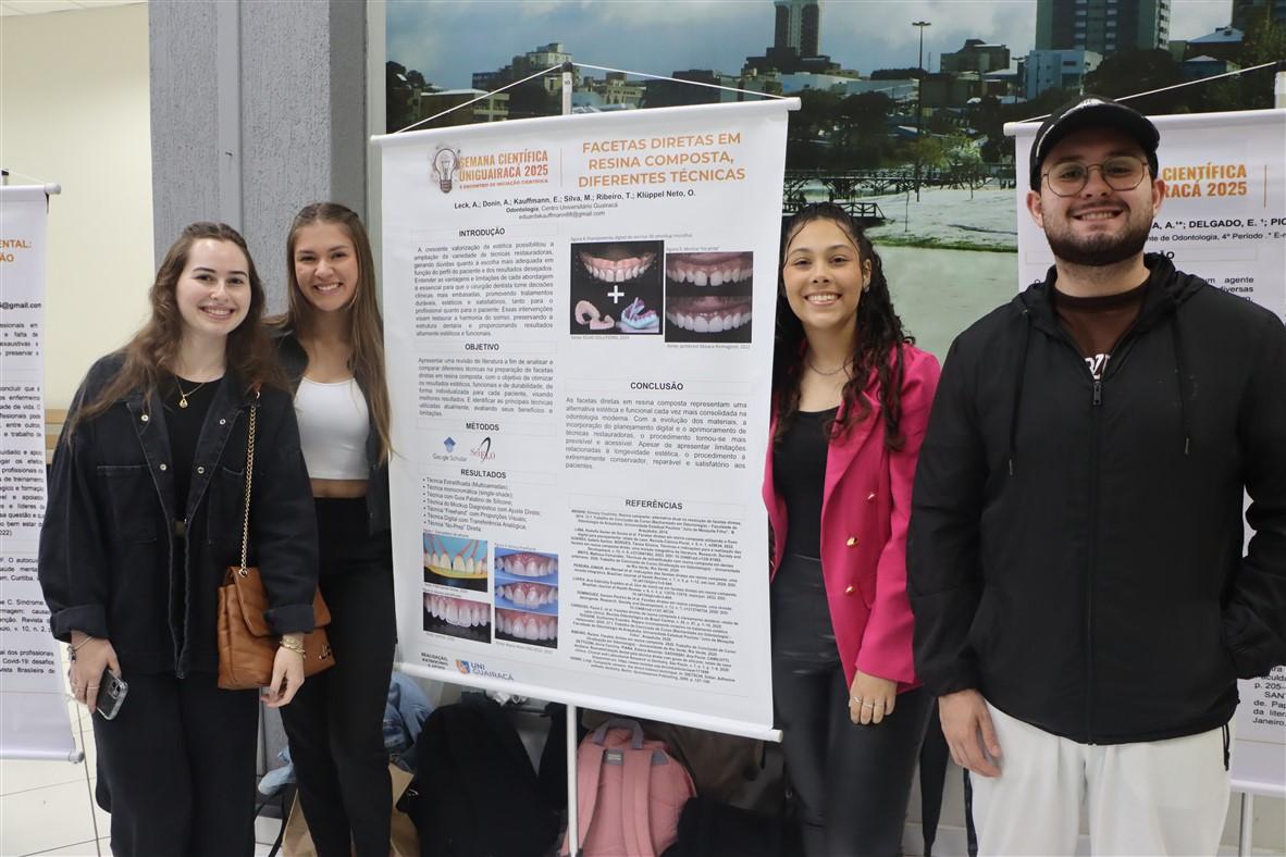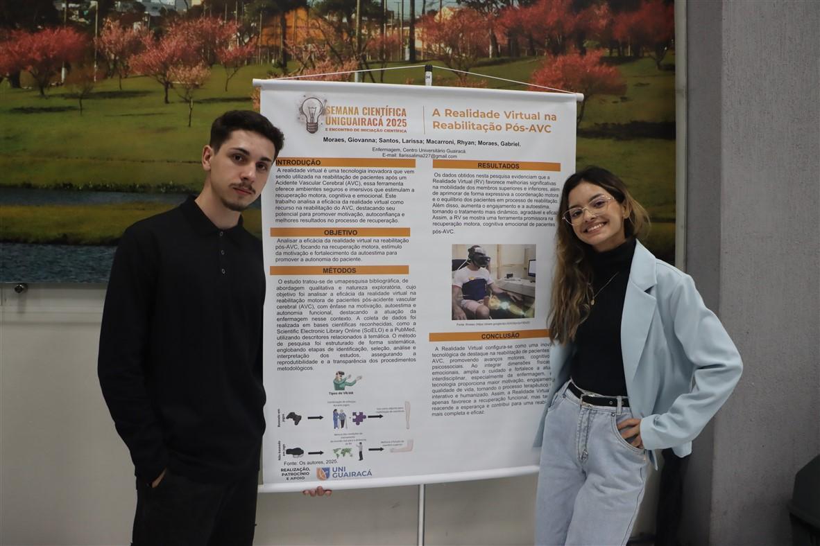 Na exposição dos banners do Encontro de Iniciação Científica há muitas pesquisas inovadoras. Os acadêmicos do curso de Medicina estão participando pela primeira vez do evento e já trouxeram grandes pesquisas realizadas no primeiro semestres. “Esse evento é uma forma de a gente trazer o aluno para dentro do mundo científico, sair da sala de aula e incomodar, no sentido de buscar conhecimento. Às vezes a gente fornece tanto conteúdo em sala que acaba deixando eles mais acomodados. Por isso esse tipo de evento faz com que eles busquem mais informações, vão atrás e tragam inovações. Então está sendo muito bacana e bem valioso”, comenta a professora Drielle Strugal.