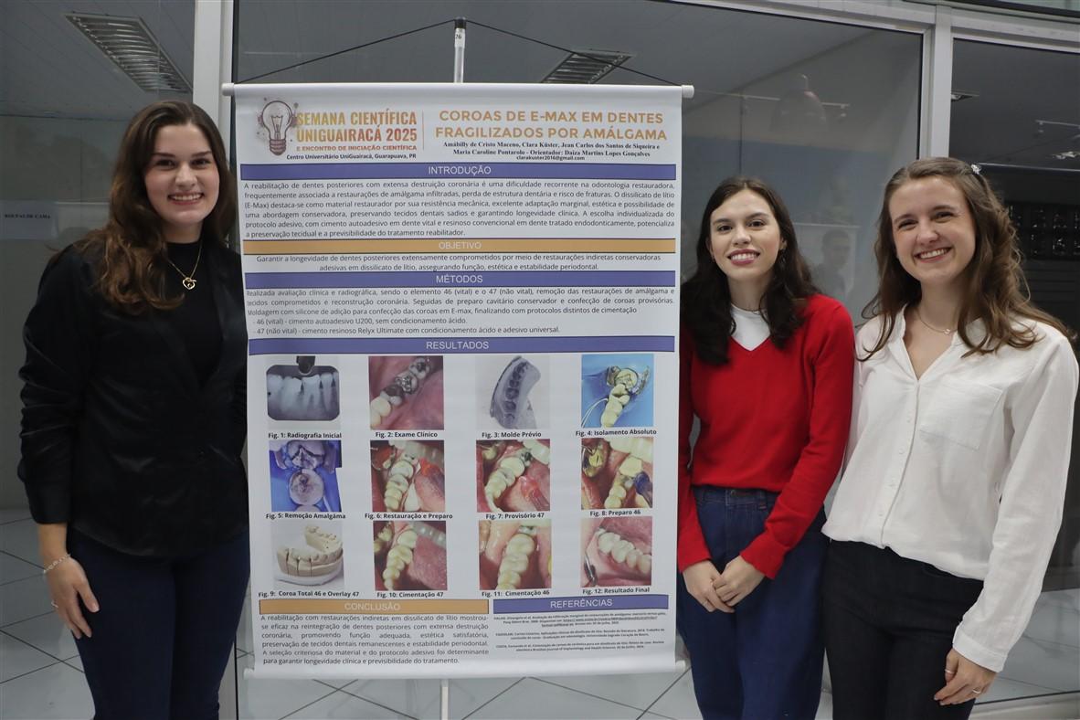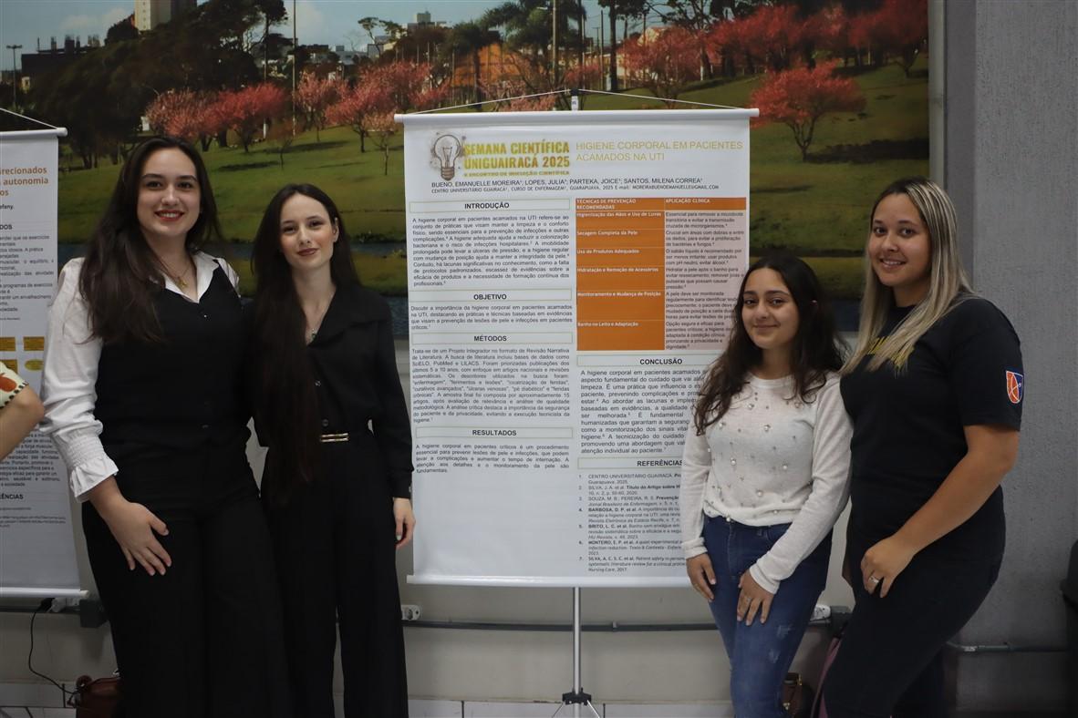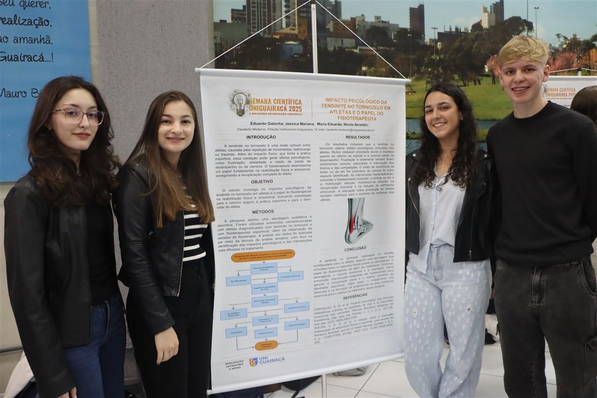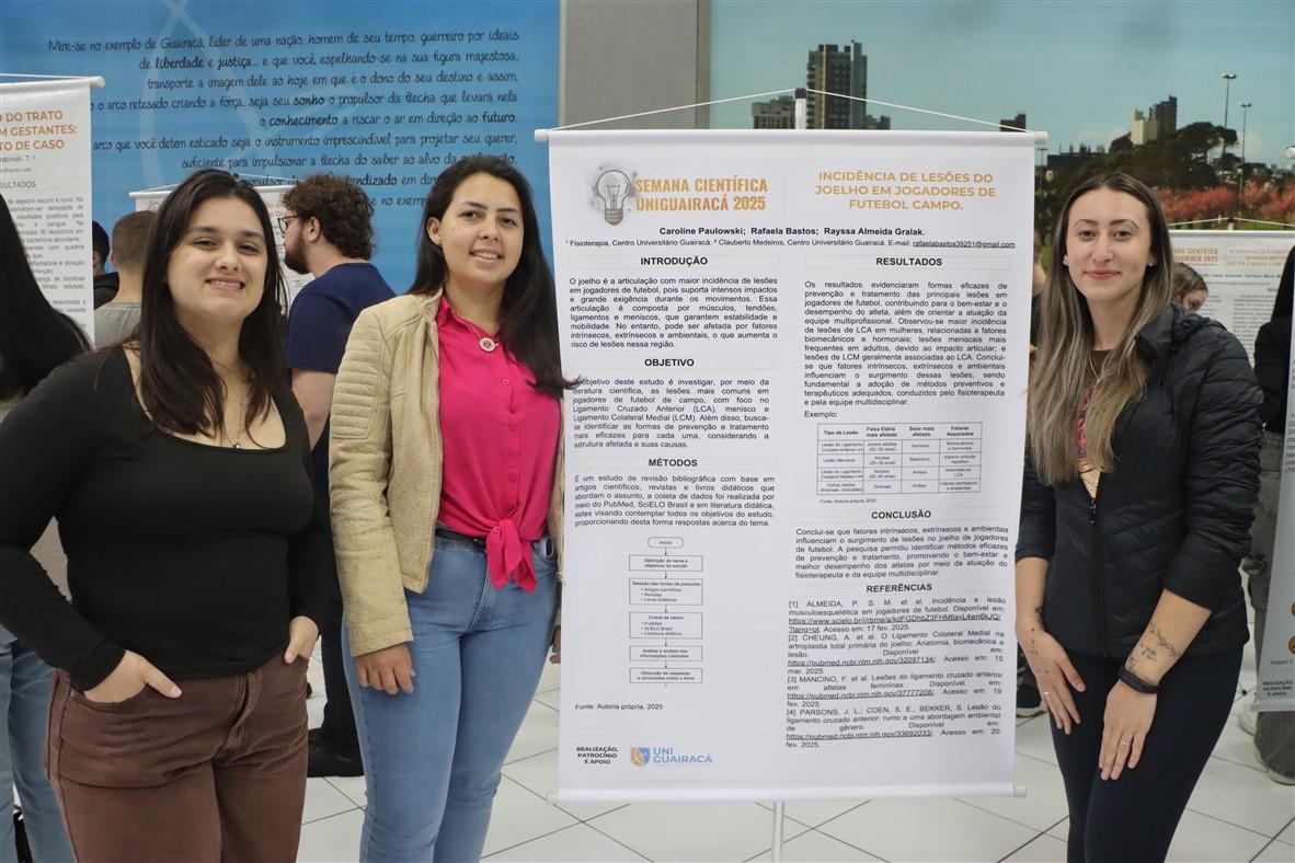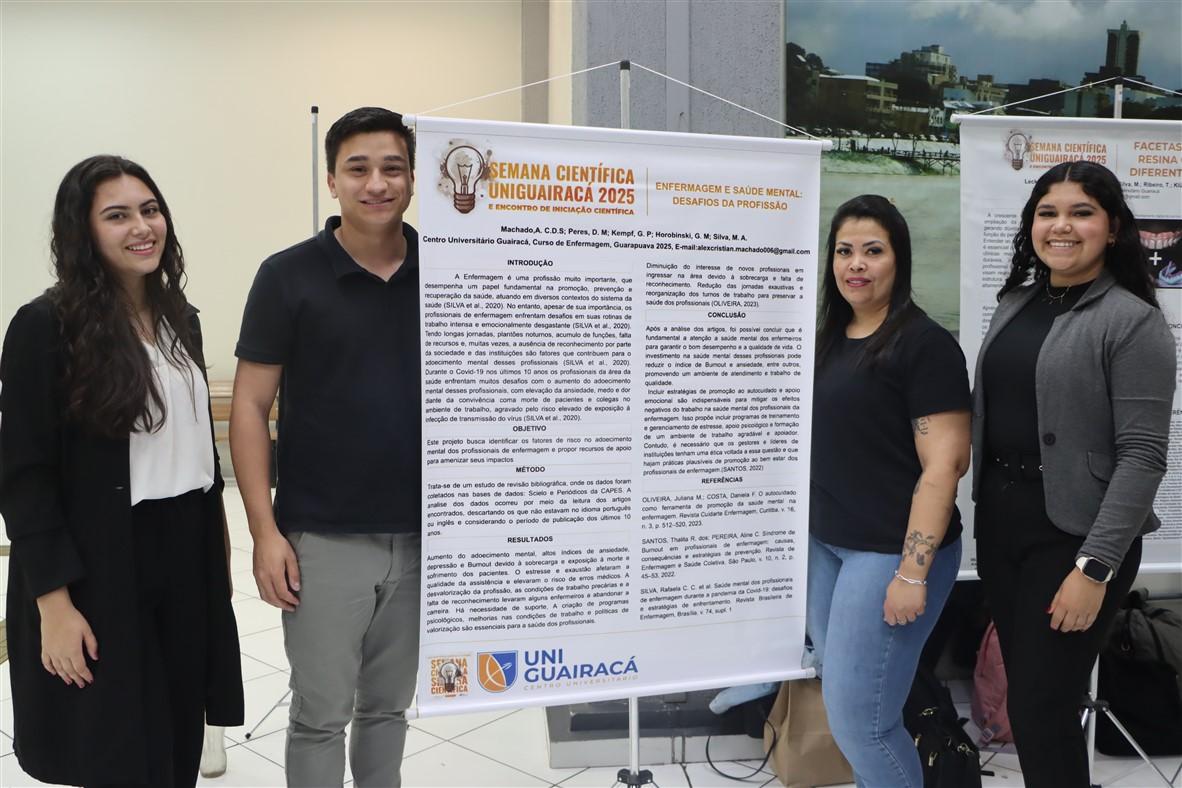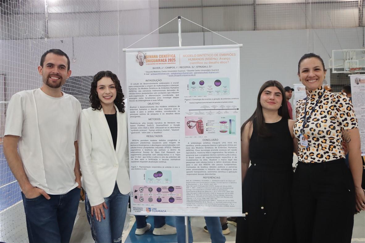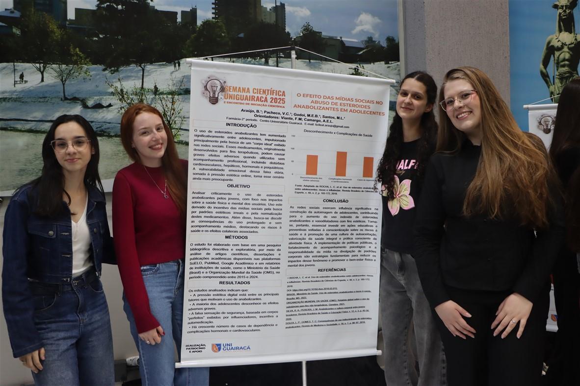 Na exposição dos banners do Encontro de Iniciação Científica há muitas pesquisas inovadoras. Os acadêmicos do curso de Medicina estão participando pela primeira vez do evento e já trouxeram grandes pesquisas realizadas no primeiro semestres. “Esse evento é uma forma de a gente trazer o aluno para dentro do mundo científico, sair da sala de aula e incomodar, no sentido de buscar conhecimento. Às vezes a gente fornece tanto conteúdo em sala que acaba deixando eles mais acomodados. Por isso esse tipo de evento faz com que eles busquem mais informações, vão atrás e tragam inovações. Então está sendo muito bacana e bem valioso”, comenta a professora Drielle Strugal.