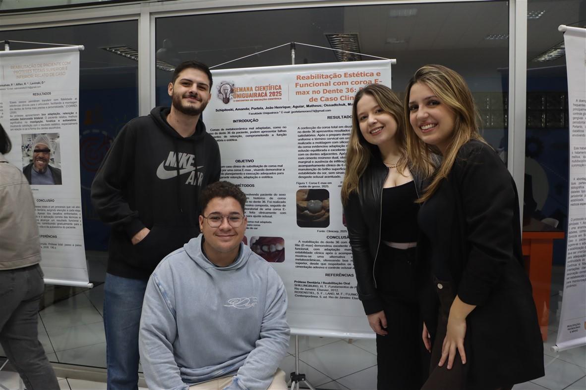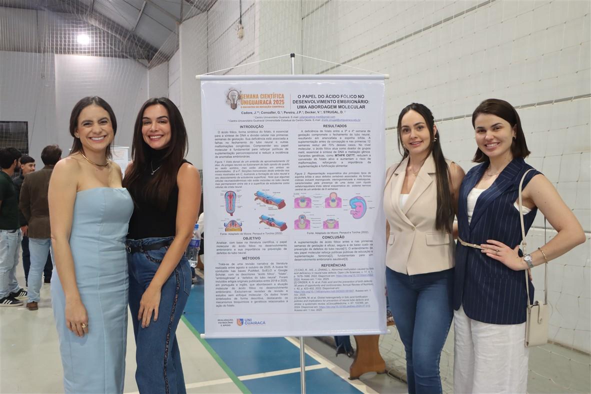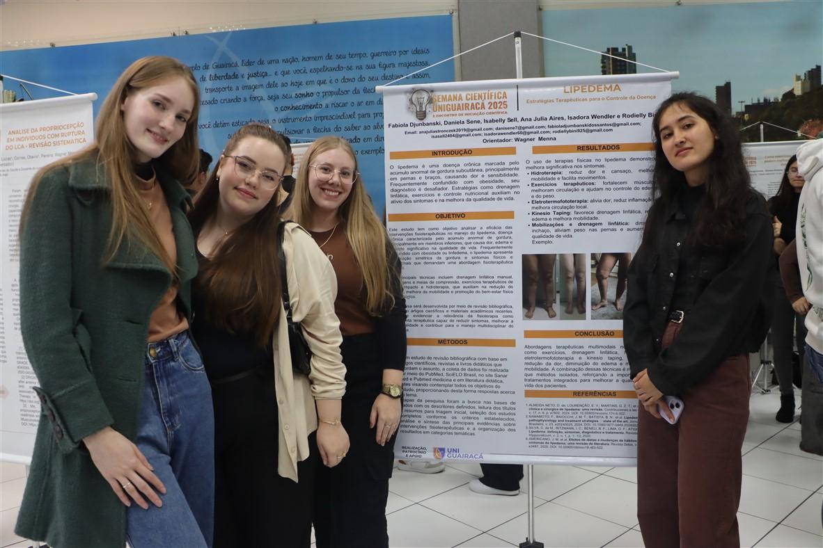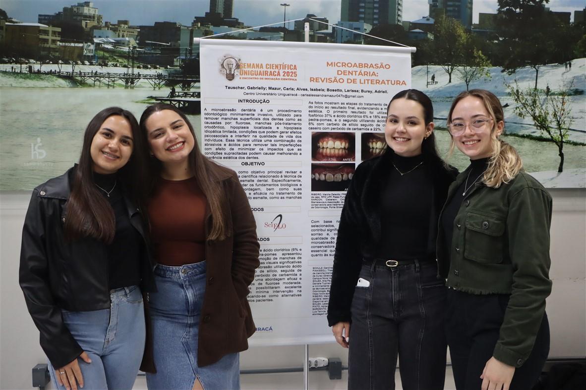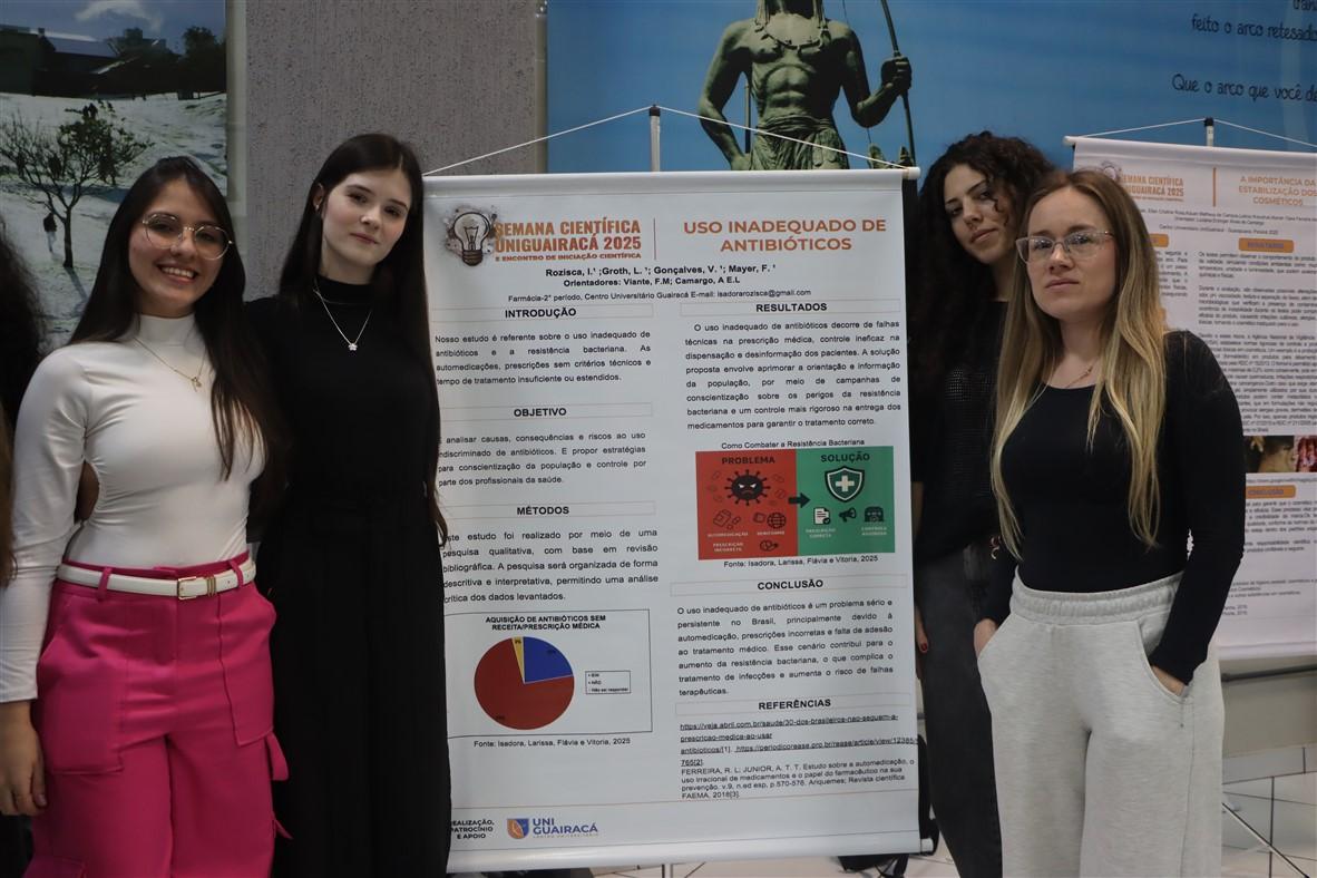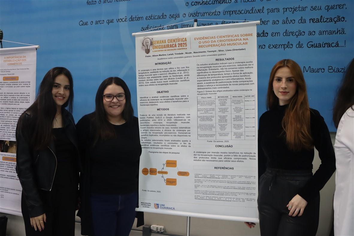 Na exposição dos banners do Encontro de Iniciação Científica há muitas pesquisas inovadoras. Os acadêmicos do curso de Medicina estão participando pela primeira vez do evento e já trouxeram grandes pesquisas realizadas no primeiro semestres. “Esse evento é uma forma de a gente trazer o aluno para dentro do mundo científico, sair da sala de aula e incomodar, no sentido de buscar conhecimento. Às vezes a gente fornece tanto conteúdo em sala que acaba deixando eles mais acomodados. Por isso esse tipo de evento faz com que eles busquem mais informações, vão atrás e tragam inovações. Então está sendo muito bacana e bem valioso”, comenta a professora Drielle Strugal.