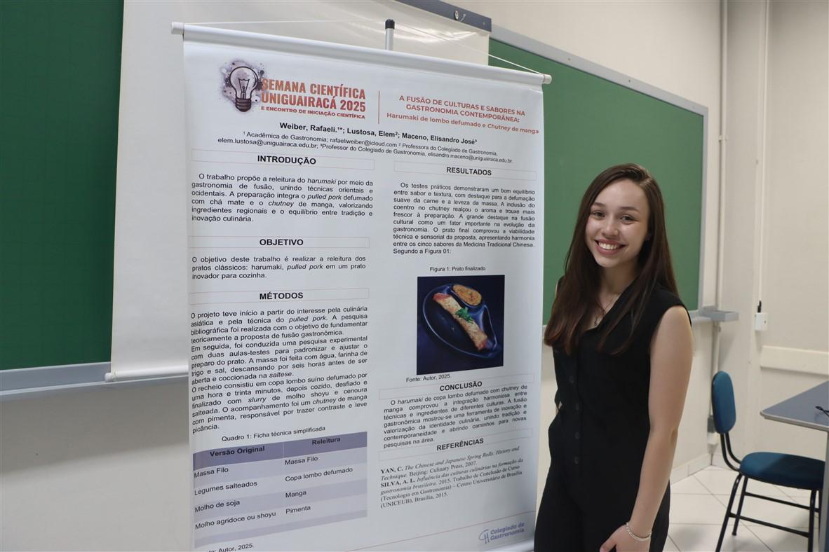 Nas salas de aula, as apresentações de TCC seguem emocionando os estudantes, que estão concluindo uma etapa muito importante na vida. “A gente encarou vários desafios durante a pesquisa, foi uma coisa muito gratificante. Apresentar o TCC hoje é a realização de um sonho para muita gente, é um sentimento de orgulho na verdade de mim mesma por poder estar aqui e ver que eu cheguei até o fim, persisti e consegui”, compartilha a aluna de Gastronomia, Rafaeli Weiber.