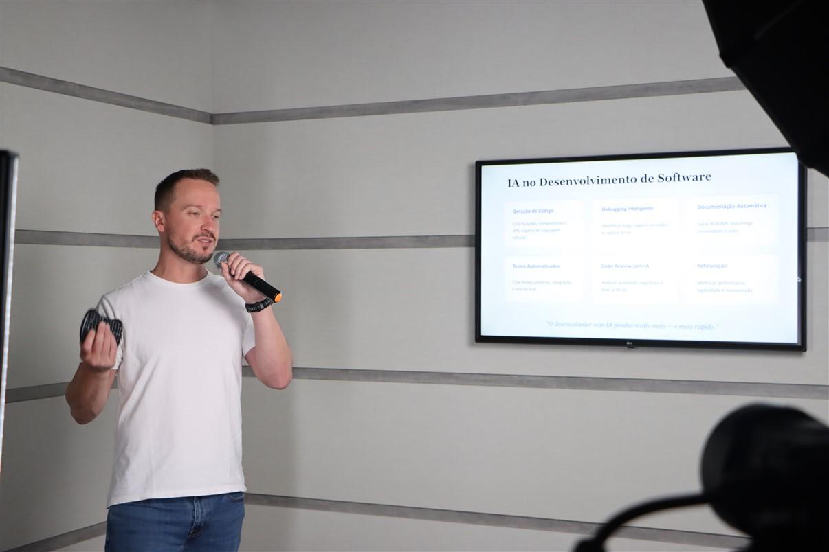 A palestra foi conduzida pelo Prof. Dr. Carlos Eduardo Iatskiu, que apresentou aplicações práticas da inteligência artificial no contexto da gestão e da tecnologia, destacando tendências, desafios e oportunidades para empresas e profissionais. Durante o encontro, foram abordadas ferramentas de Inteligência Artificial e suas funcionalidades, reforçando a importância da atualização constante e da preparação para as mudanças impulsionadas pela inovação tecnológica.