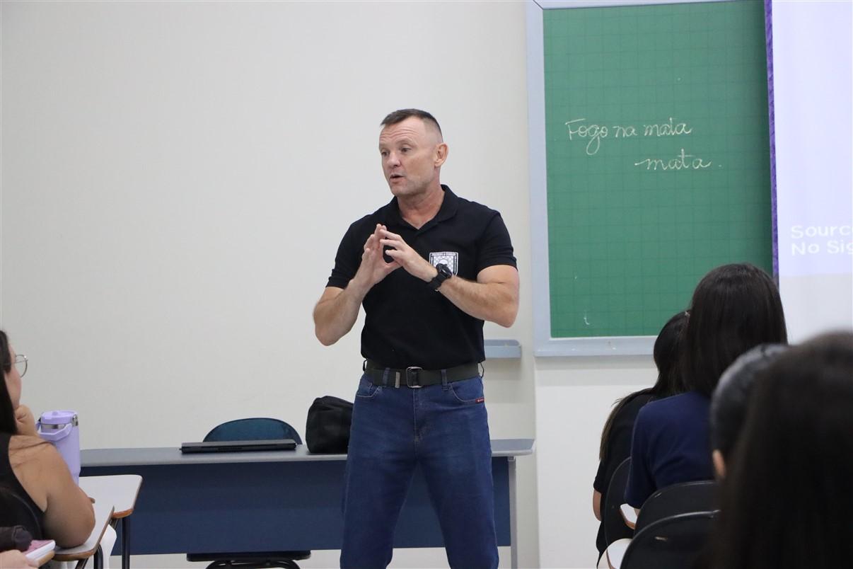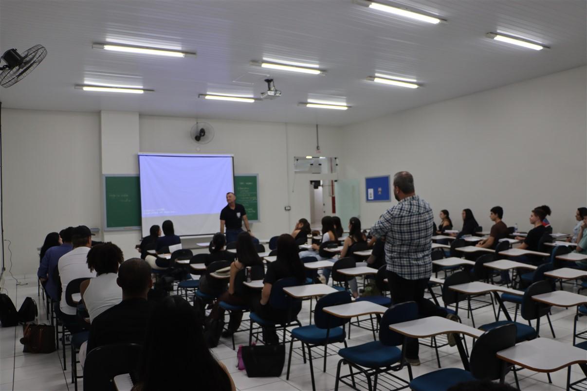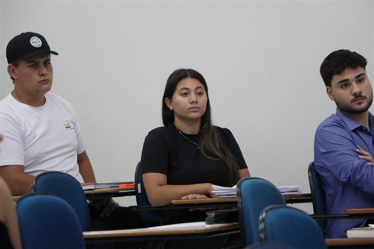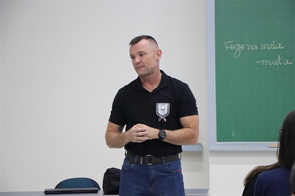 Entender e conhecer desde o início da graduação todos os caminhos que poderão ser percorridos na carreira é muito importante para que os alunos possam se encontrar e acessar o leque de oportunidades que os aguarda. Por isso, na noite de quinta-feira (26), os acadêmicos do 1º período de Direito da UniGuairacá Centro Universitário receberam a visita do Major Cristiano Cubas, oficial da Polícia Militar do Paraná, para uma palestra durante a disciplina de Direito, Ciência e Profissão.