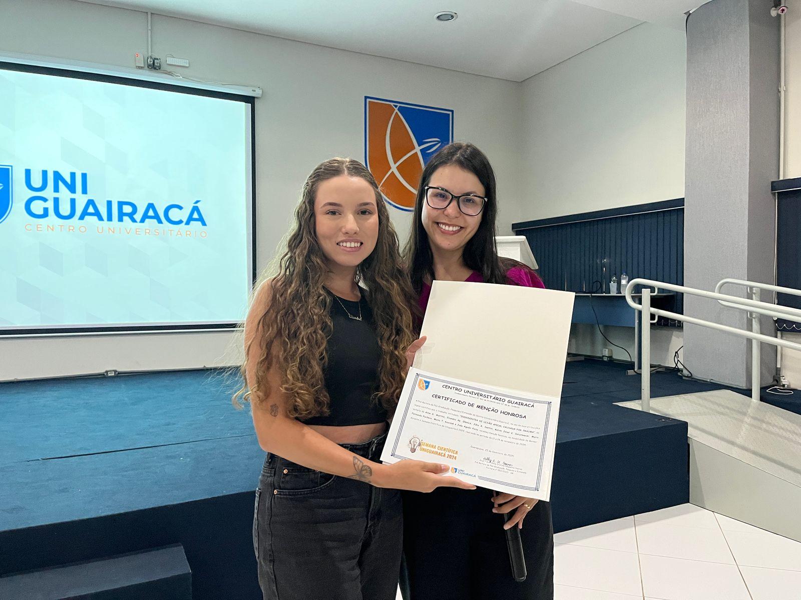 Ao final da noite, houve também a entrega de certificados de menção honrosa aos cinco melhores trabalhos apresentados na Semana Científica 2024.