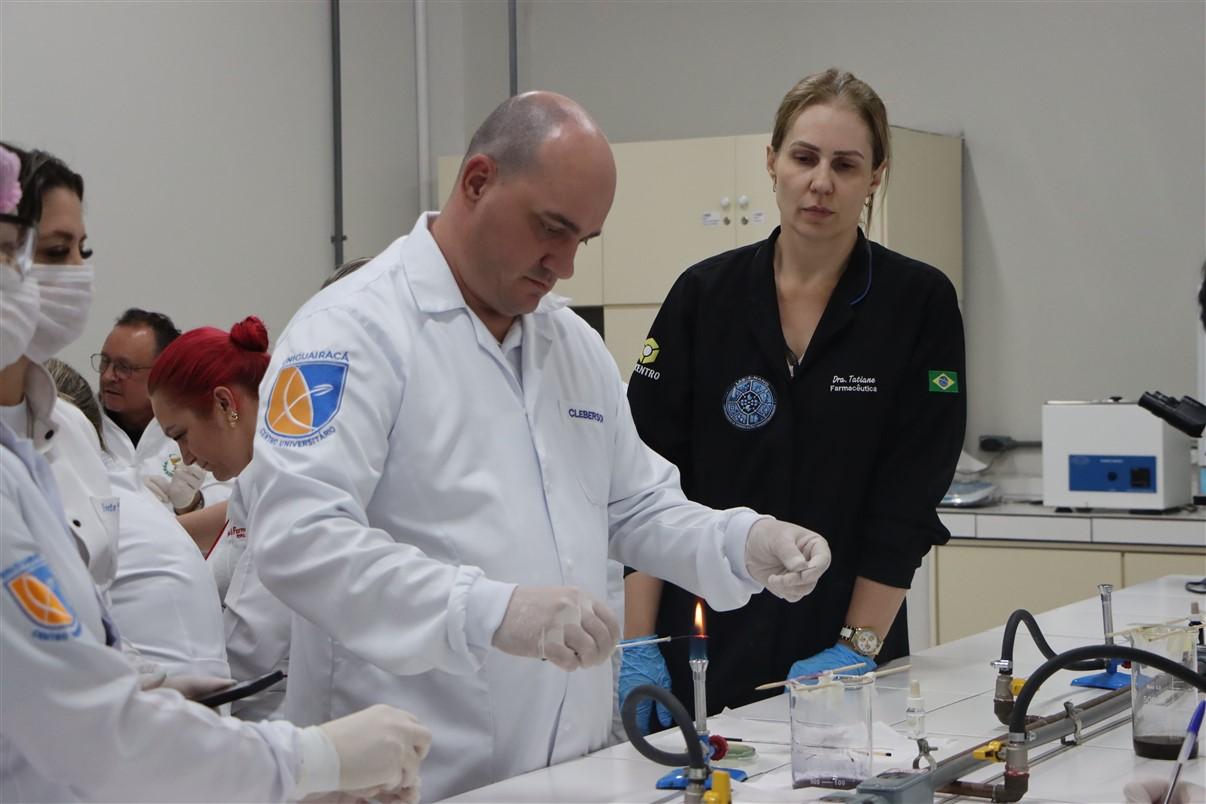 Neste sábado (7), os cursos de Biomedicina, Educação Física Bacharelado, Enfermagem, Estética e Cosmética, Farmácia, Fisioterapia, Nutrição e Terapia Ocupacional deram início às aulas práticas do Polo EAD de Guarapuava da UniGuairacá Centro Universitário. Explorando os laboratórios disponíveis na instituição e na Policlínica Guairacá, os alunos tiveram aulas de bioquímica básica, citologia, histologia e genética, bromatologia, estética corporal, bacteriologia clínica e muitas outras.