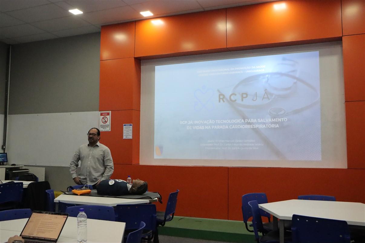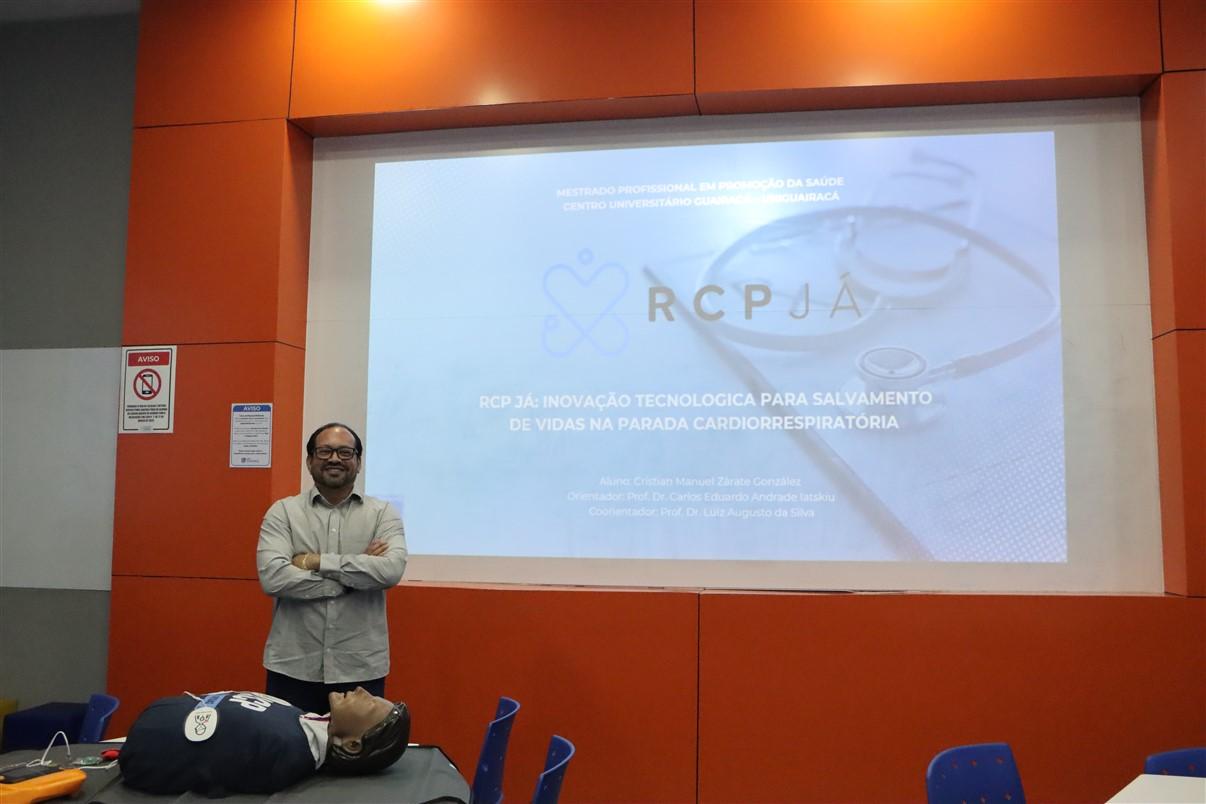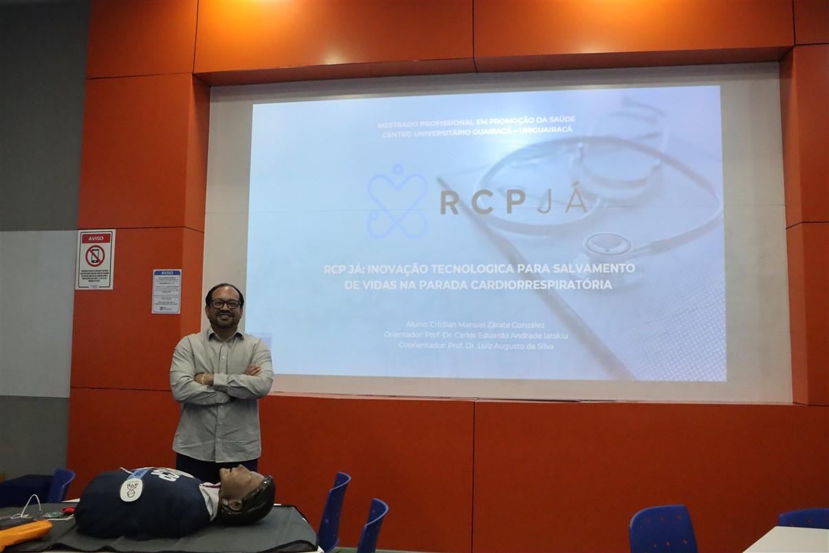 Na noite desta terça-feira (14), o médico e aluno Cristian Manuel Zárate González defendeu a dissertação no Mestrado Profissional em Promoção da Saúde da UniGuairacá Centro Universitário. O tema do seu projeto foi "Reanimação Cardiopulmonar (RCP) Já: inovação tecnológica para salvamento de vidas na parada cardiorrespiratória".