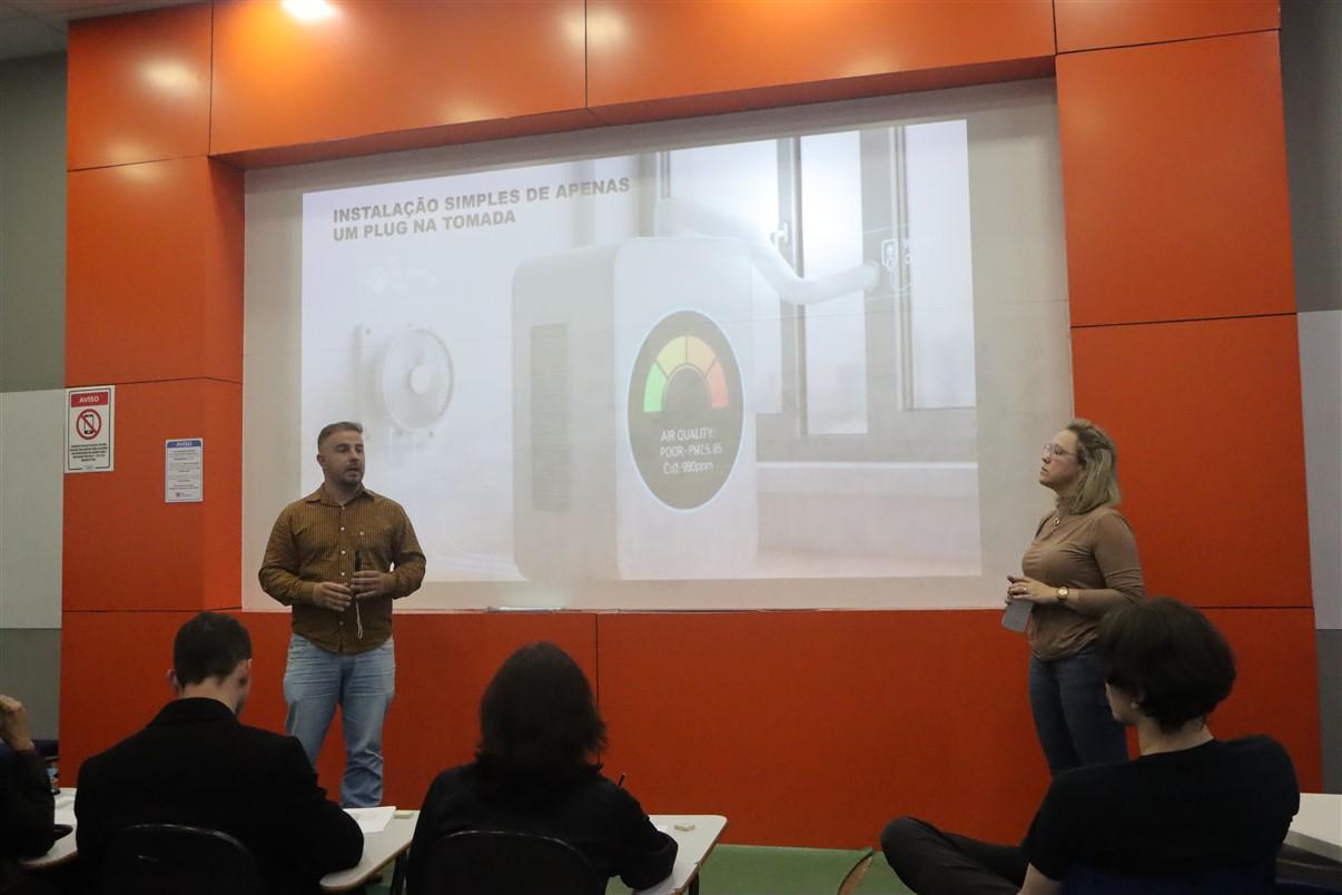 Na última sexta-feira (10), foi realizado mais um Ideathon nas matérias de extensão com o professor Lorenzo Junior. Desta vez, em parceria com a empresa LL Ambiental. A ideia era buscar soluções para a melhoria da qualidade do ar interior de ambientes, pensando nos possíveis impactos na saúde da população. Os alunos foram acompanhados pelo Coordenador do setor de Qualidade do Ar, Eduardo Masetto, e o Engenheiro Civil, Josué.