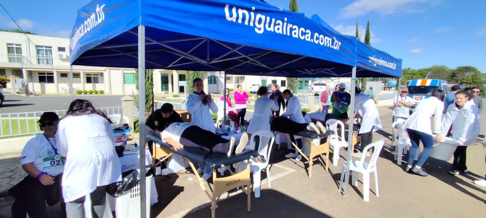 No final de semana, os acadêmicos do curso de Fisioterapia da UniGuairacá Centro Universitário atuaram na 1ª Corrida/Caminhada da Melhor Idade, no Município de Pinhão.