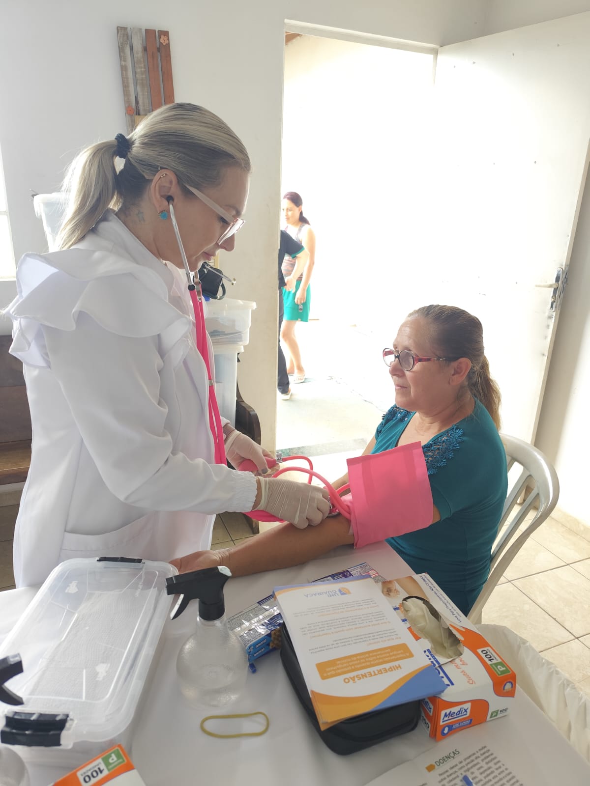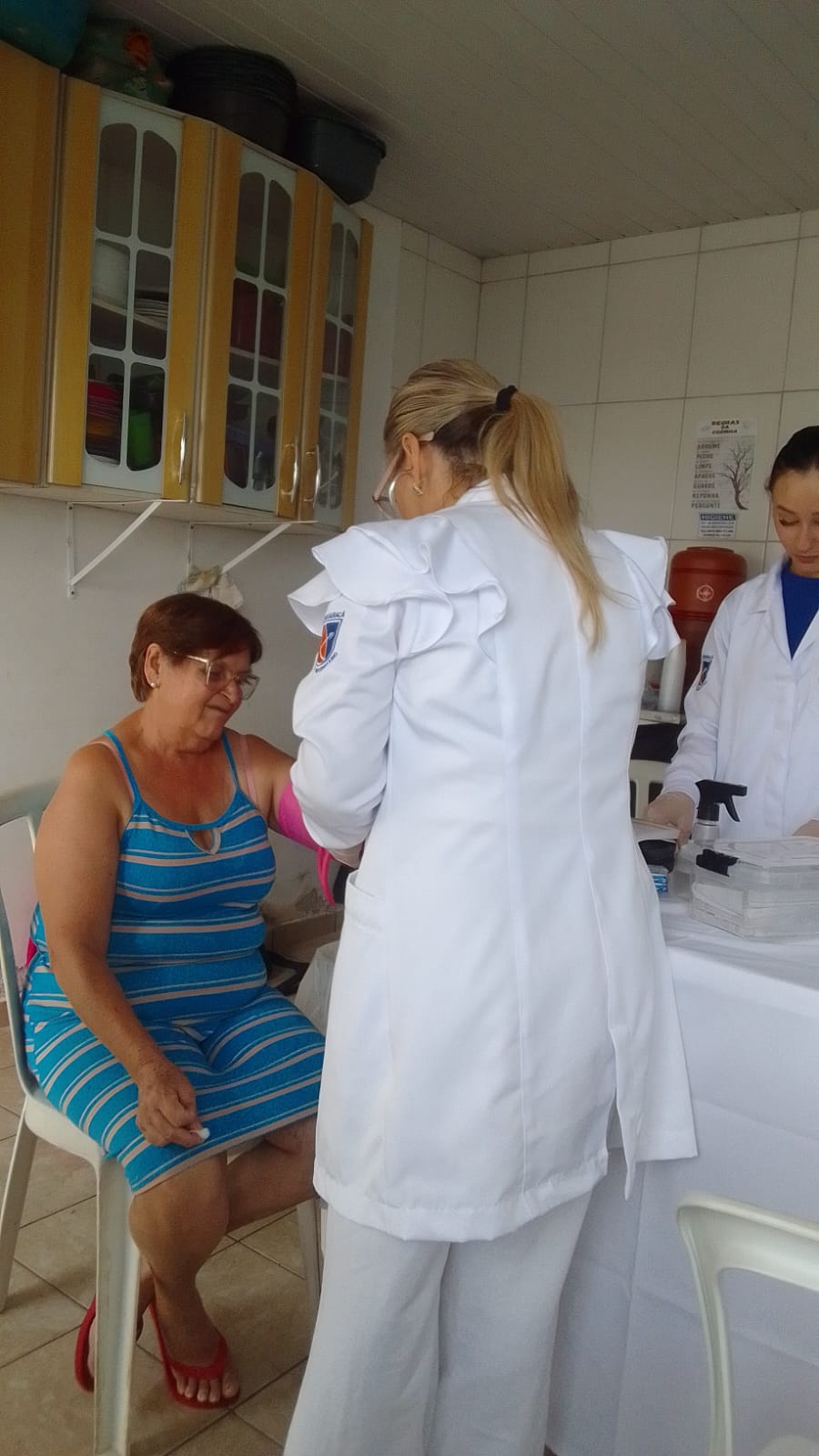 Alunos de Biomedicina, Enfermagem, Fisioterapia e Odontologia desenvolveram ações de saúde para os idosos participantes do Projeto de Acolhimento do ADRA no Jardim das Américas.