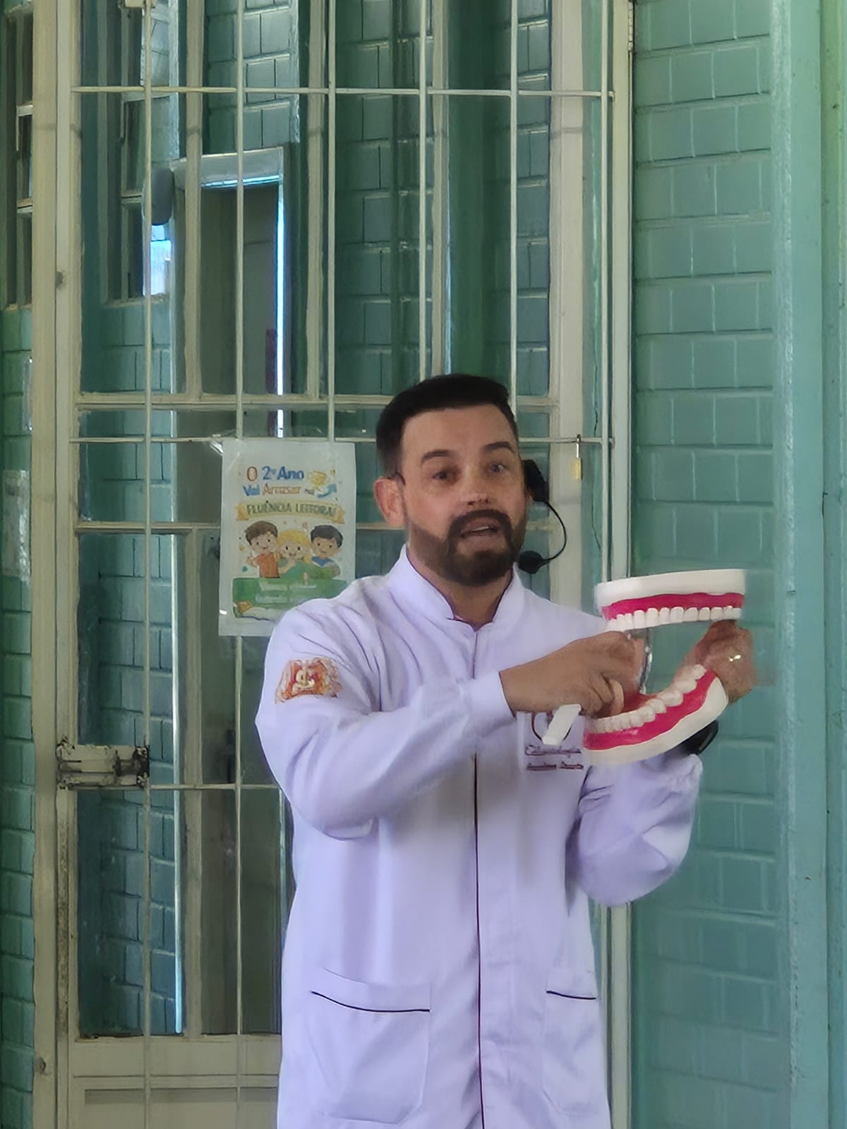 O acadêmico deu dicas de escovação e cuidados para os alunos da escola, colocando em prática os conhecimentos adquiridos na graduação.