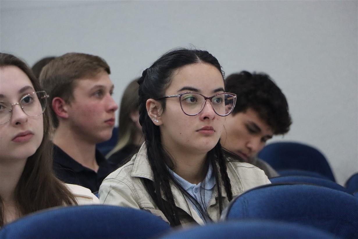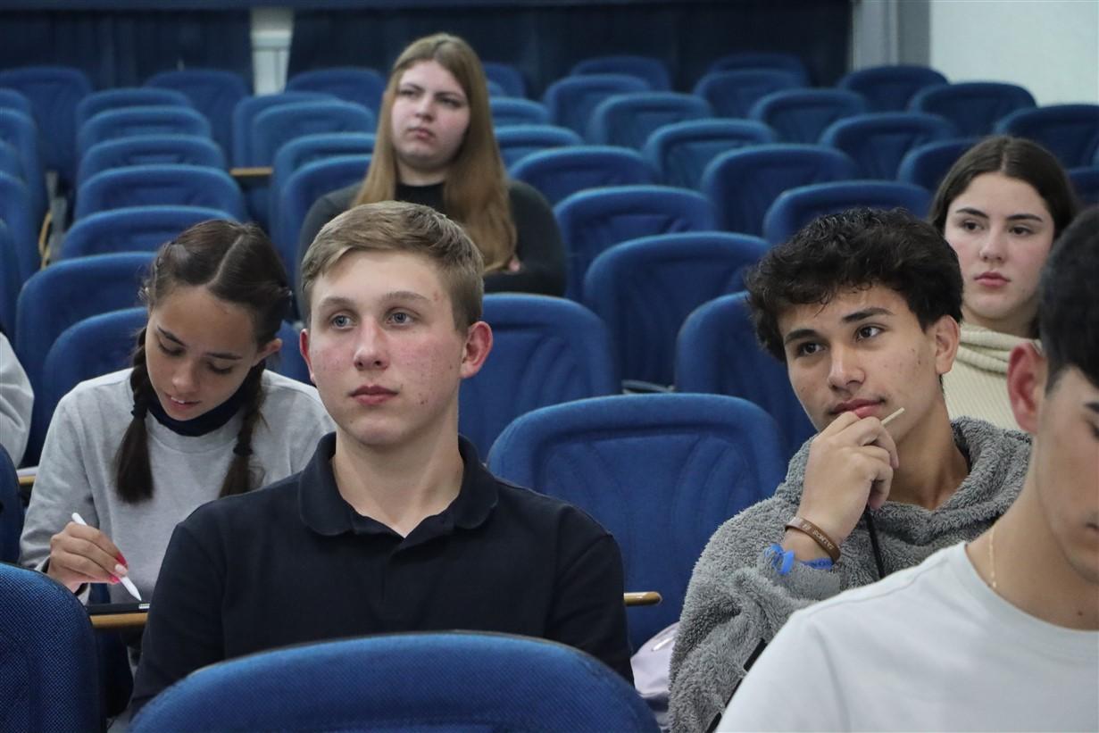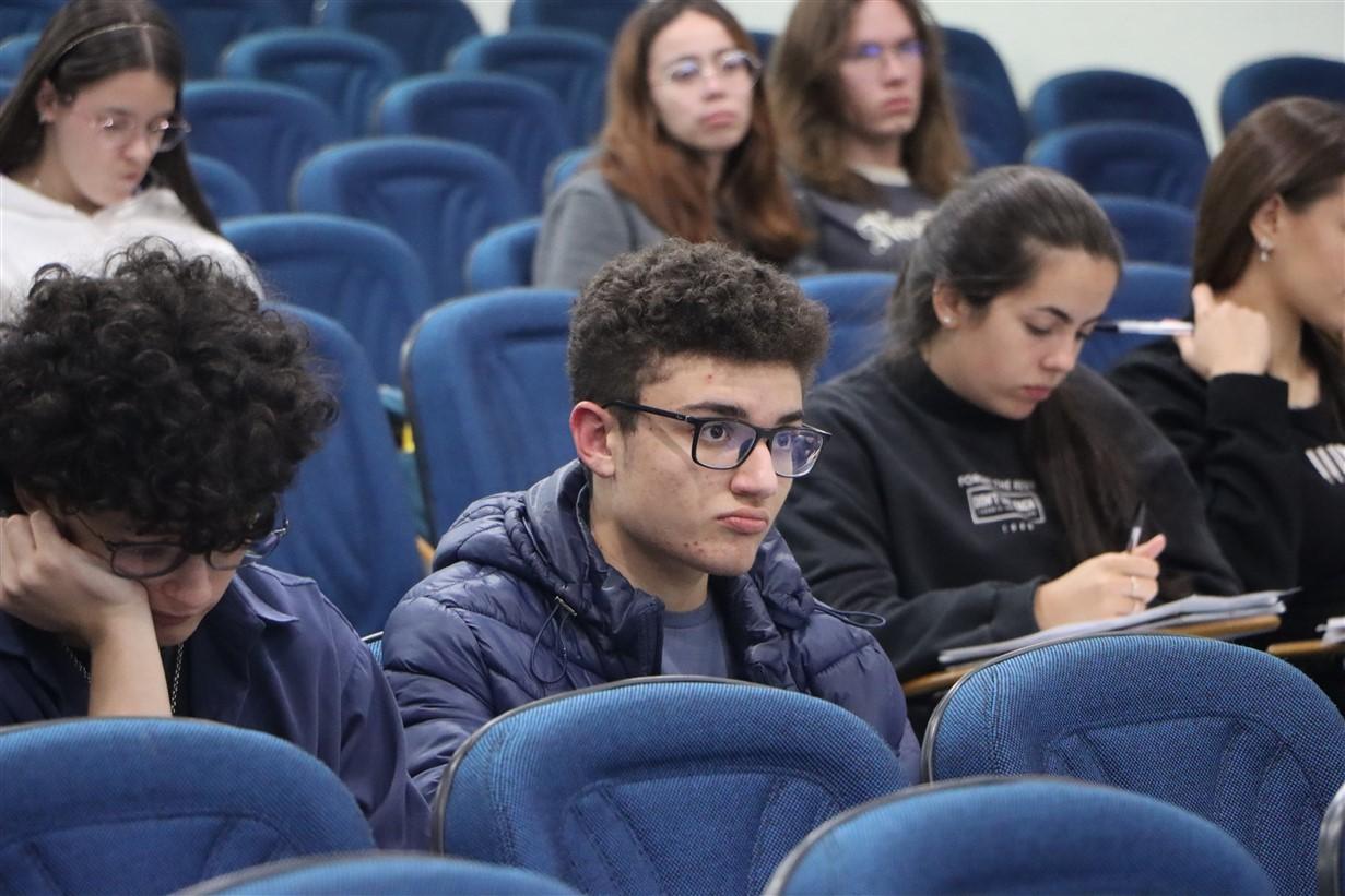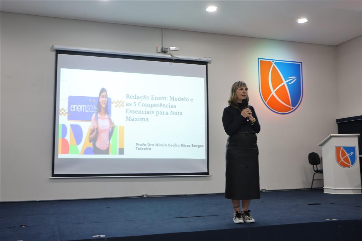A Profª Níncia já fez parte da equipe de correção das redações do ENEM e trouxe dicas para os alunos, além de explicar a estrutura do texto e como funcionam as pontuações e eixos da redação. Já a Profª Lucélia, resolveu com os estudantes algumas questões da prova e mostrou os elementos da matemática que mais aparecem no exame.