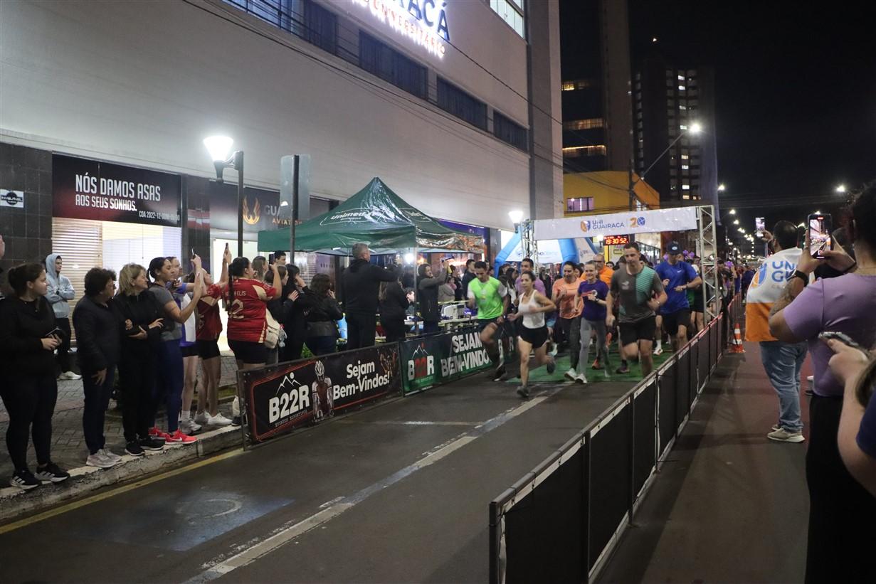 Na noite da última quinta-feira (30), a UniGuairacá Centro Universitário realizou a Corrida Noturna, uma das provas da Gincana Nacional dos 20 anos. O trajeto foi de 3 km e reuniu alunos, professores, atletas profissionais e colaboradores. Além disso, também foram realizados os últimos jogos da modalidade voleibol.