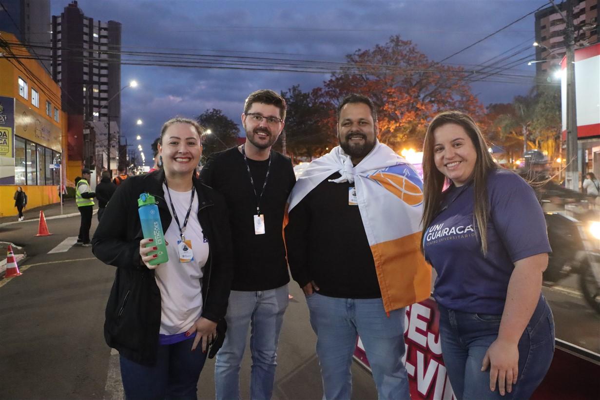 Entre os corredores da noite, estavam a atleta olímpica Tatiane Raquel da Silva, pela Equipe Roxa. “É um prazer enorme estar representando a UniGuairacá nesse evento, pois sempre fez parte da minha vida. Eu estudei e me formei aqui e hoje vim para representá-la”, compartilha. O atleta de Orientação e estudante do curso de Direito na instituição, Tiago Evaristo, participou pela Equipe Laranja. “Pra mim é uma honra estar aqui, porque a corrida era a prova que eu mais estava esperando, pois é o esporte que eu mais tenho intimidade”, comenta.