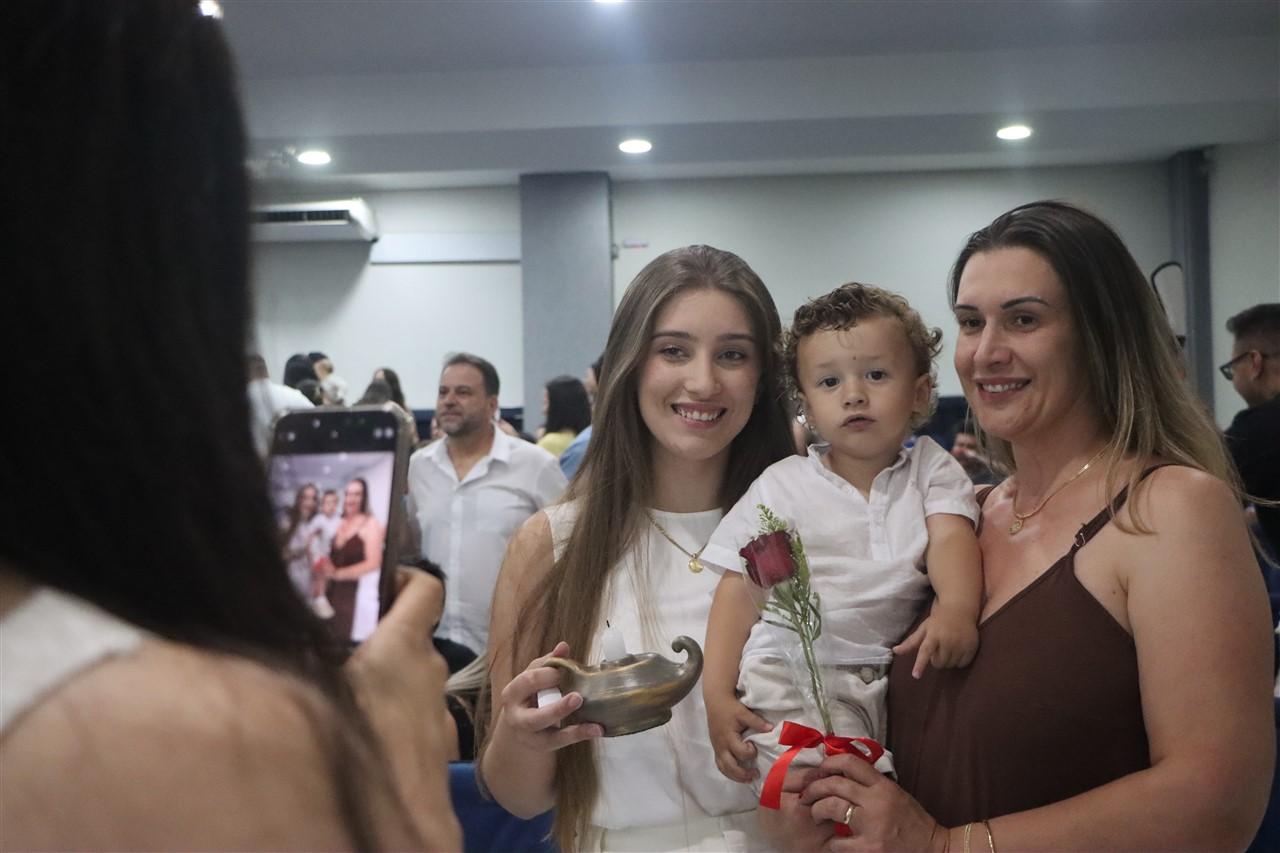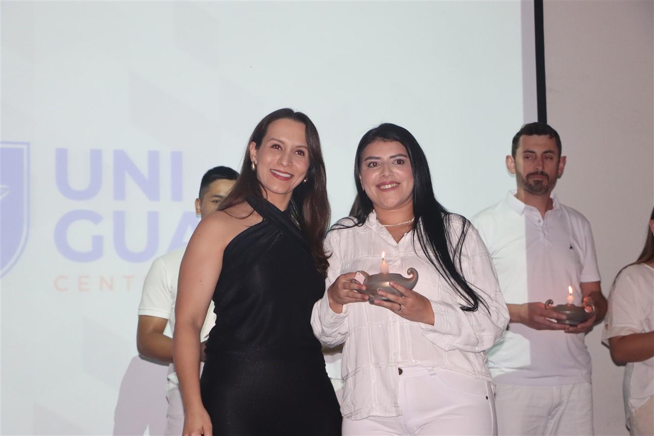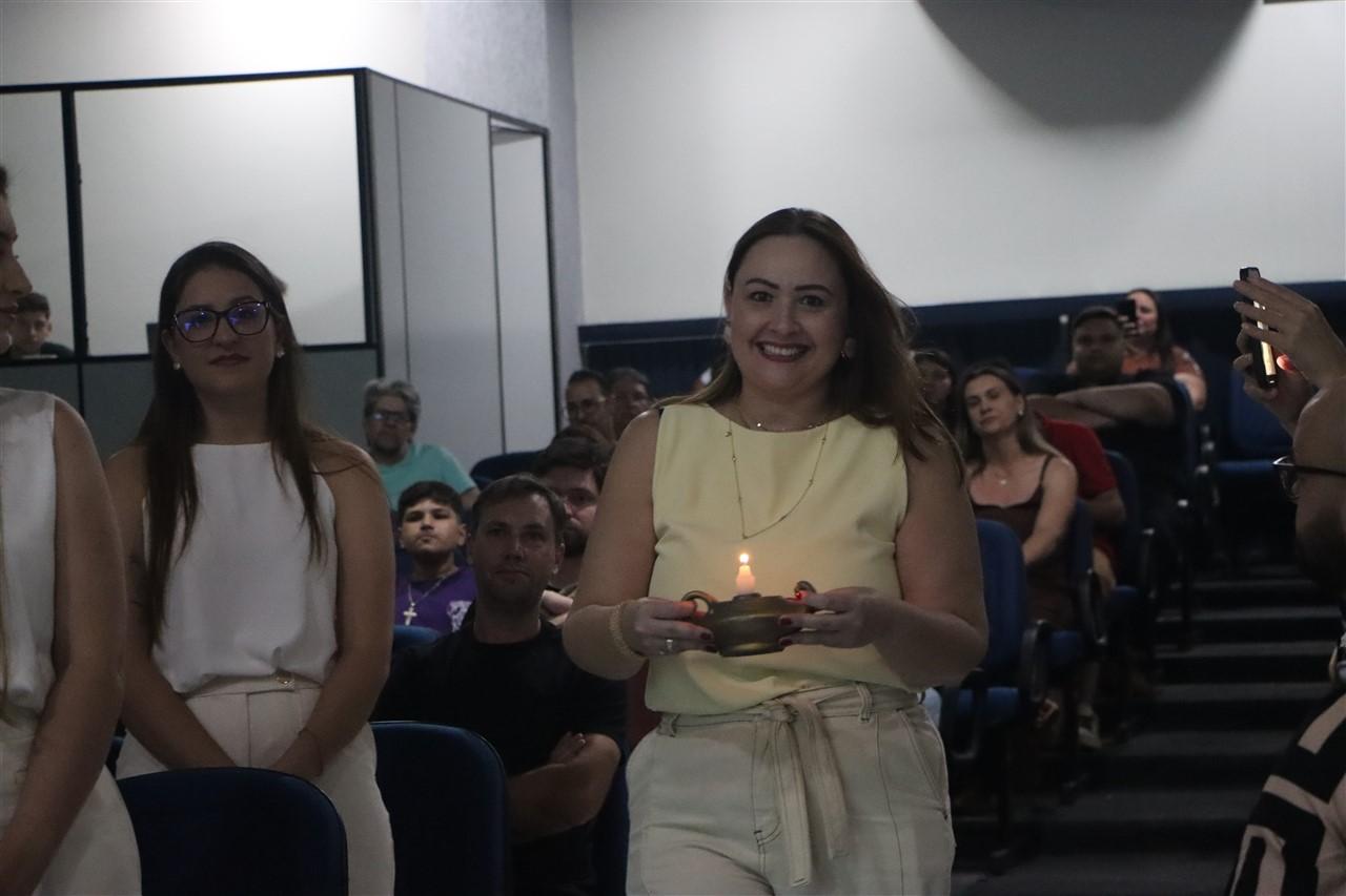 O ritual carrega história, luz e propósito. A chama que os acadêmicos recebem simboliza tudo aquilo que aprenderam e tudo aquilo que pretendem levar aos futuros pacientes. “Geralmente a gente escolhe a profissão que a gente quer, mas a Enfermagem não. A Enfermagem é o chamado de Deus. São profissionais que têm muita responsabilidade na formação. Então, queridos formandos, não esqueçam de sempre continuar estudando, se atualizando. A UniGuairacá sempre vai estar de portas abertas para todos vocês. Lembrem-se de cuidar dos pacientes com muita ética e com muito respeito”, destaca a vice-reitora, Profª Dra. Kelly Cristina Soares. Além disso, ela desejou boa sorte na caminhada dos novos enfermeiros.