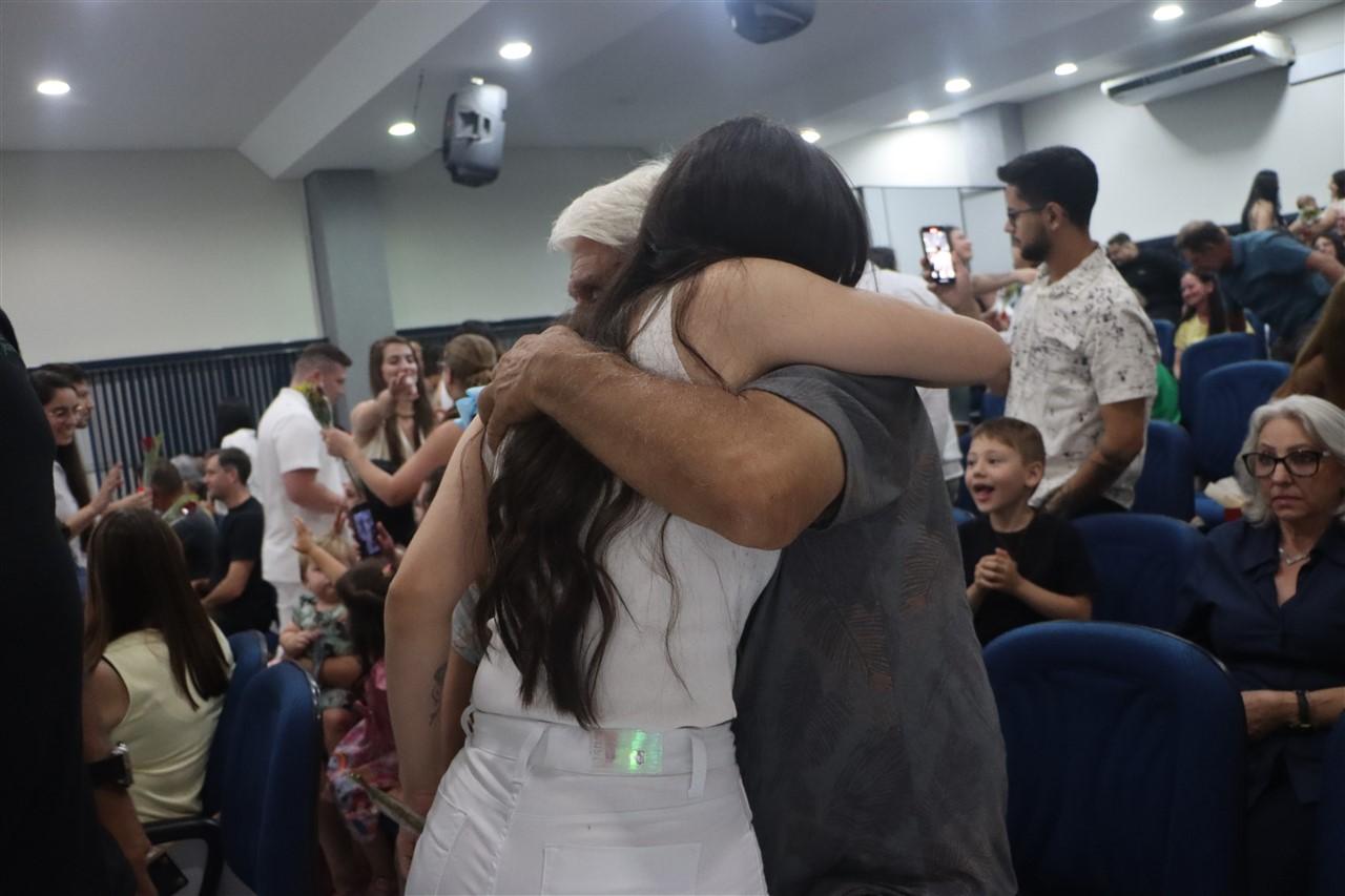 Foi uma noite repleta de emoções com a presença de pais, familiares e outras pessoas importantes para cada aluno. Durante a cerimônia, houve ainda homenagem às instituições de saúde e aos pacientes, homenagem aos professores, aos funcionários, aos colegas e também aos pais.