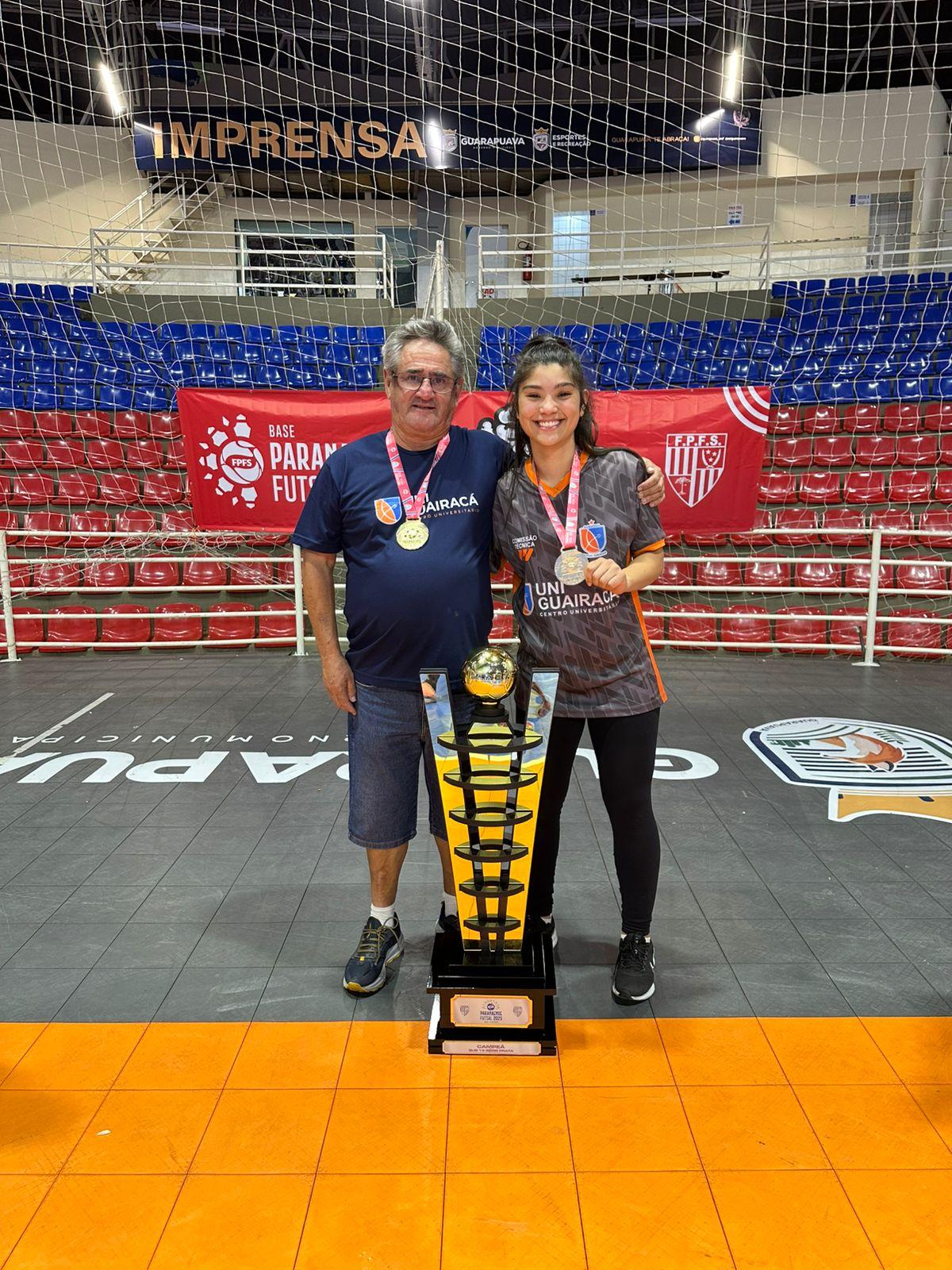 A equipe sub-13 do time de futsal feminino AGFF/UniGuairacá/Prefeitura de Guarapuava conquistou o 1º lugar no Campeonato Paranaense de Futsal Feminino Prata 2025. A partida final foi um empate contra as meninas de Colombo/CEP Feminino.