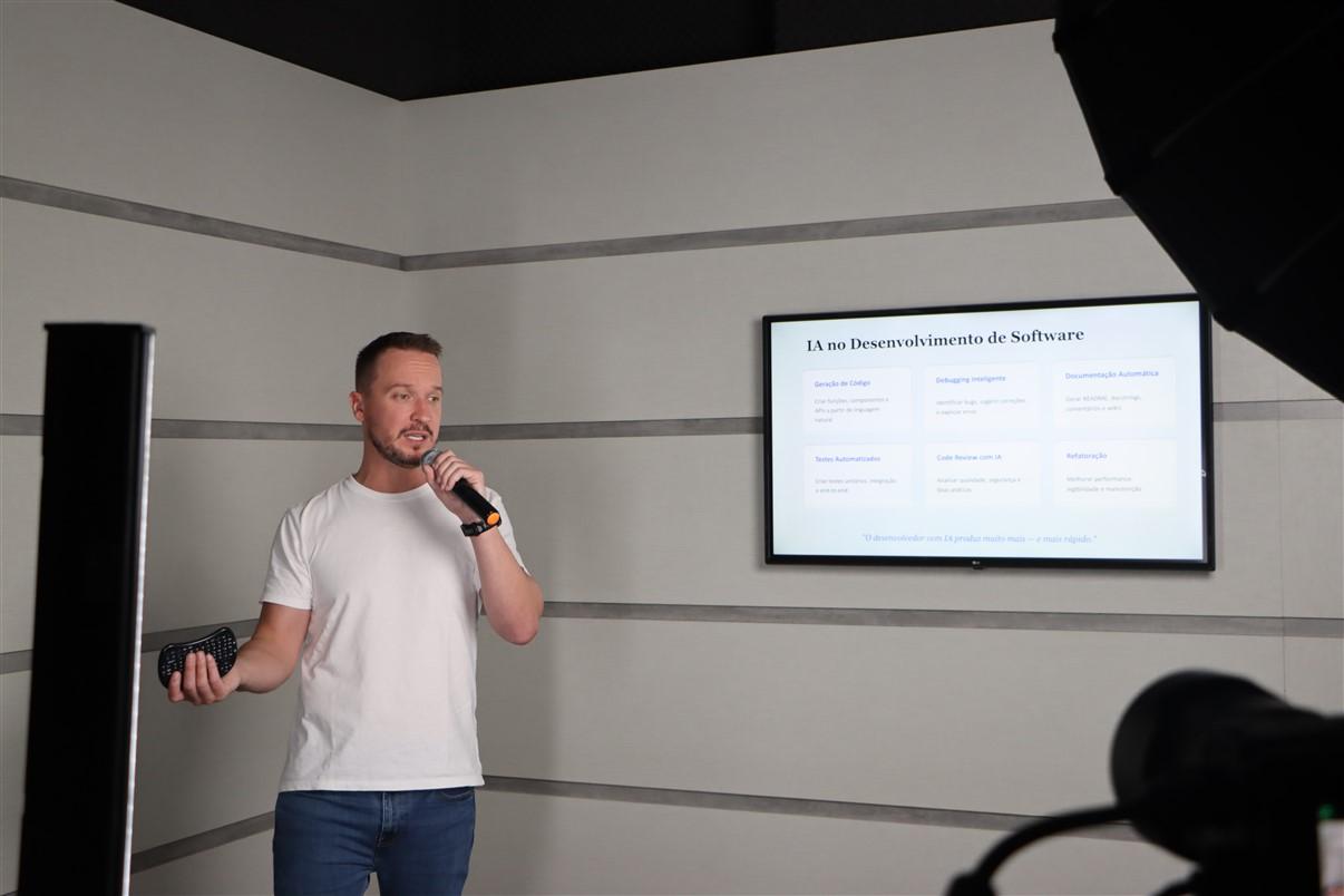 A palestra foi conduzida pelo Prof. Dr. Carlos Eduardo Iatskiu, que apresentou aplicações práticas da inteligência artificial no contexto da gestão e da tecnologia, destacando tendências, desafios e oportunidades para empresas e profissionais. Durante o encontro, foram abordadas ferramentas de Inteligência Artificial e suas funcionalidades, reforçando a importância da atualização constante e da preparação para as mudanças impulsionadas pela inovação tecnológica.