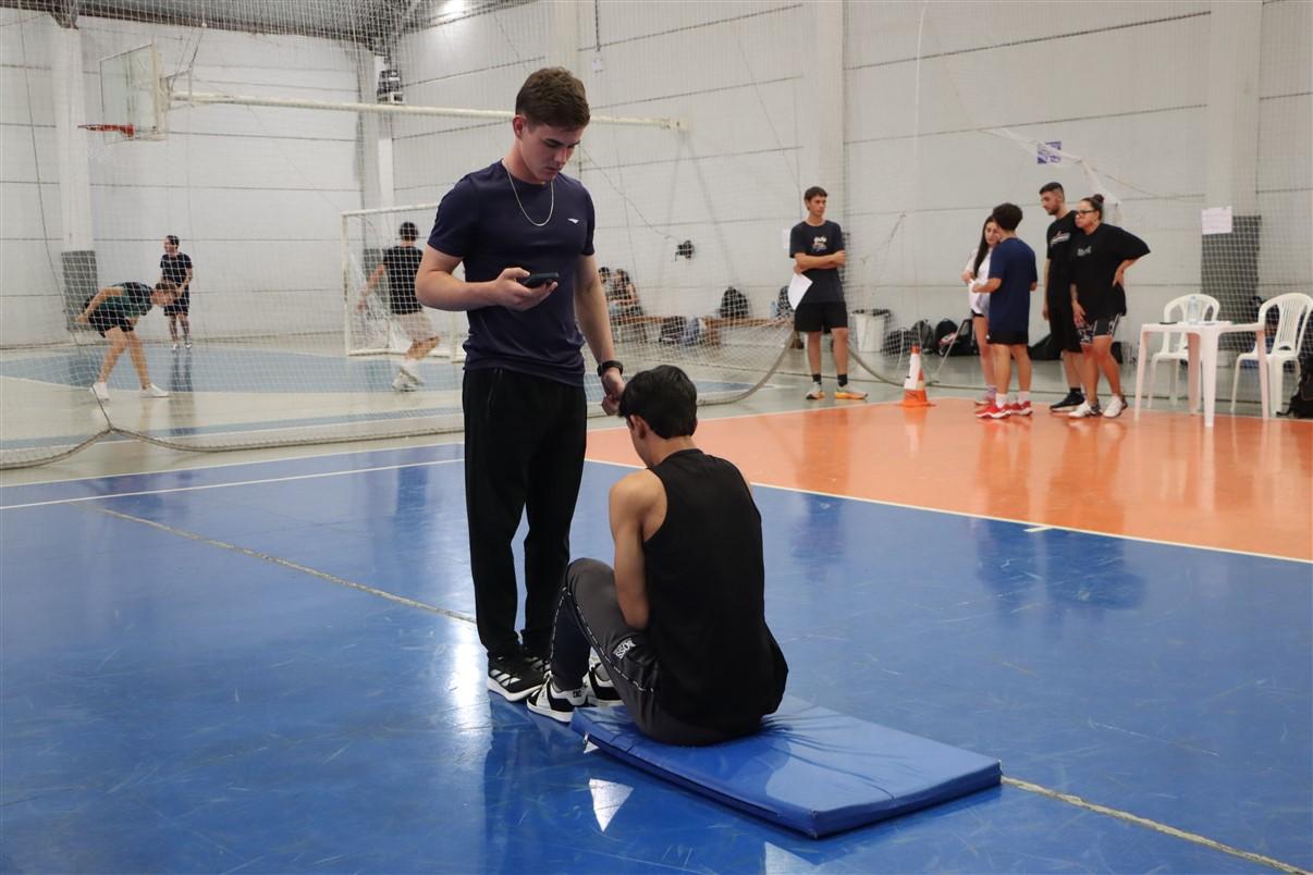 Na noite de terça-feira (17), os acadêmicos do quinto período do curso de Educação Física da UniGuairacá Centro Universitário realizaram um protocolo de atividade física com os alunos do primeiro período. A prática foi aplicada aos que ainda são considerados adolescentes, na faixa etária de 17 anos. “Eles estão testando a flexibilidade, fazendo abdominal, caminhada, corrida de 20 metros, saltos, vendo IMC e as dobras cutâneas, pois é muito importante para saber a condição física deles”, comenta a aluna Kallyane Jonson.