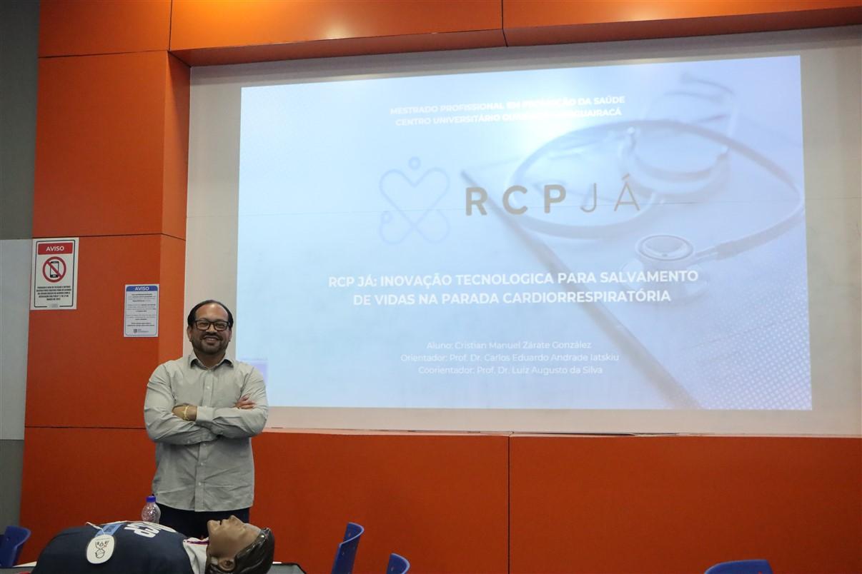 Na noite desta terça-feira (14), o médico e aluno Cristian Manuel Zárate González defendeu a dissertação no Mestrado Profissional em Promoção da Saúde da UniGuairacá Centro Universitário. O tema do seu projeto foi "Reanimação Cardiopulmonar (RCP) Já: inovação tecnológica para salvamento de vidas na parada cardiorrespiratória".