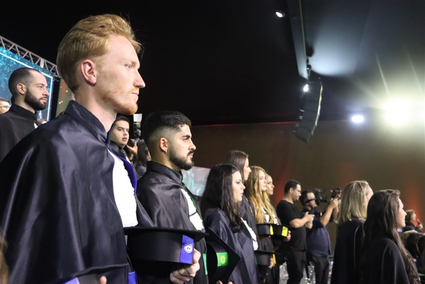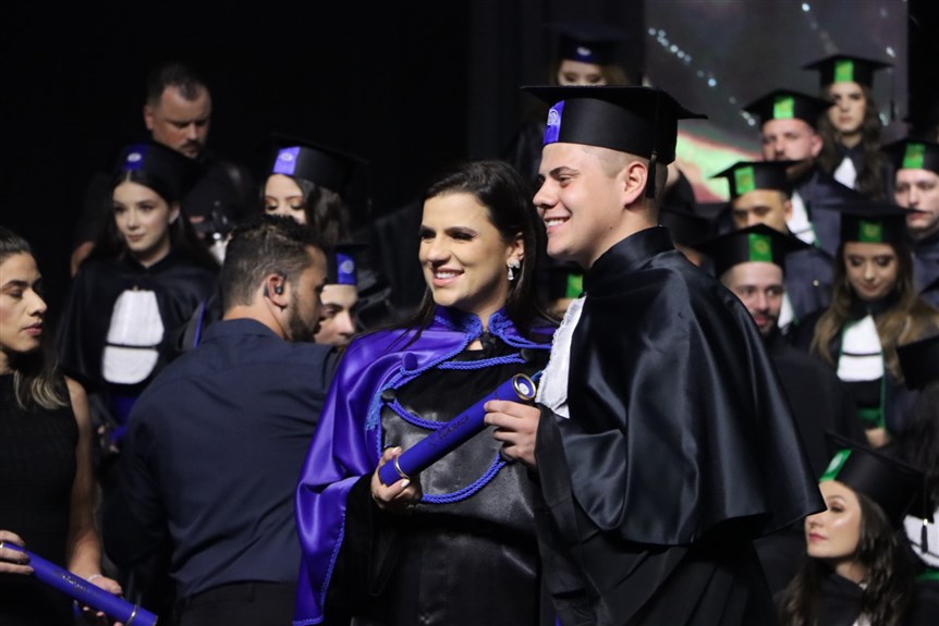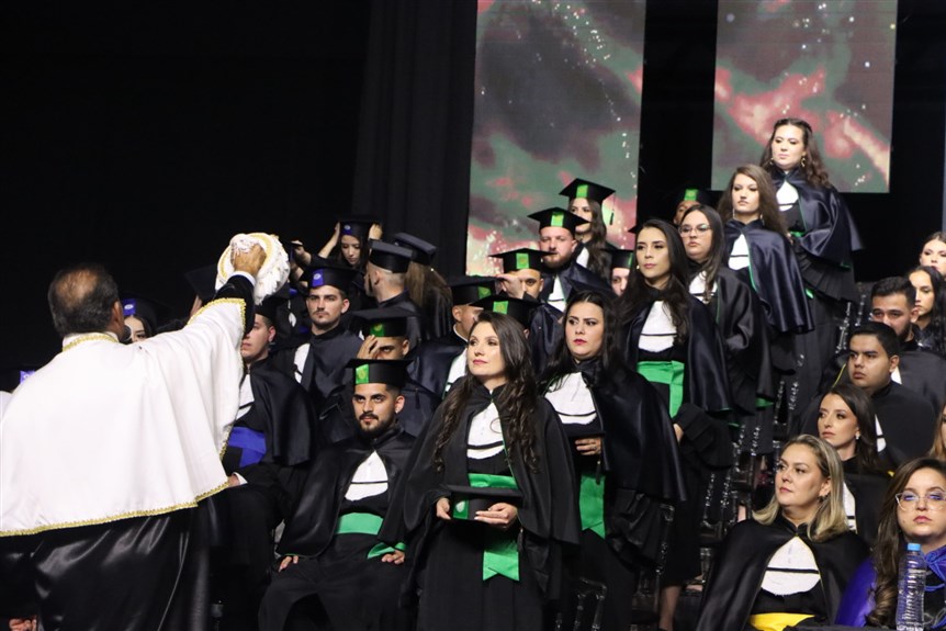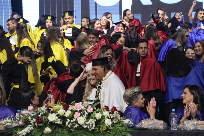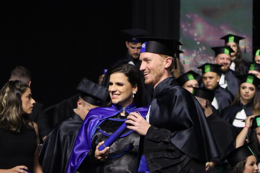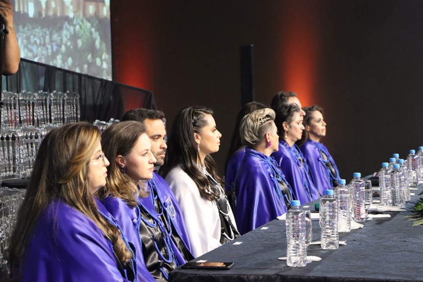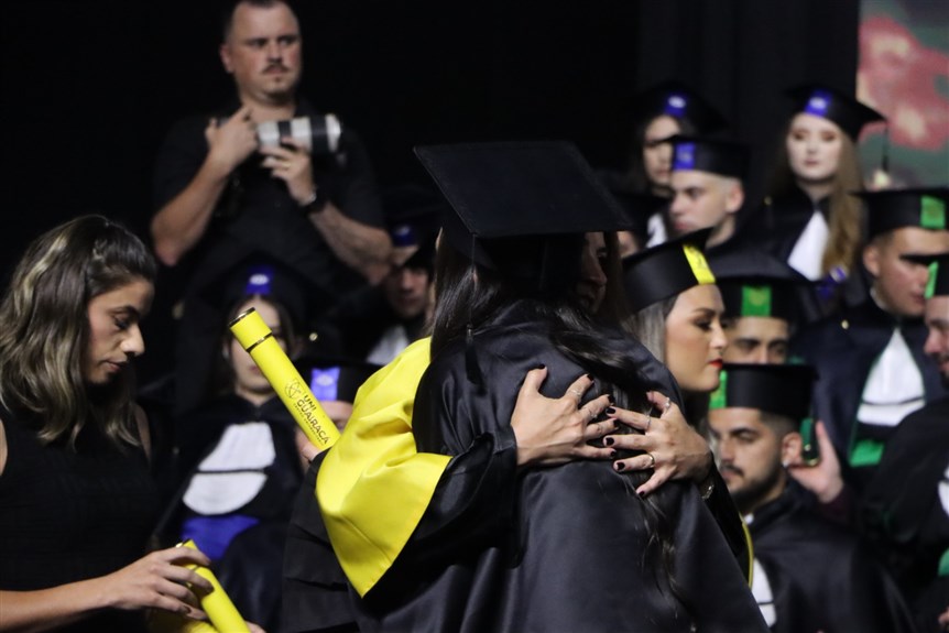 Os graduados, trajados com suas becas e capelos com cores respectivas dos seus cursos, atravessaram o palco para receber os diplomas que simbolizam o resultado de anos de aprendizado e comprometimento. Além da celebração, a Colação foi marcada por homenagens sinceras aos professores e aos funcionários que desempenharam um papel fundamental na jornada acadêmica dos graduados.