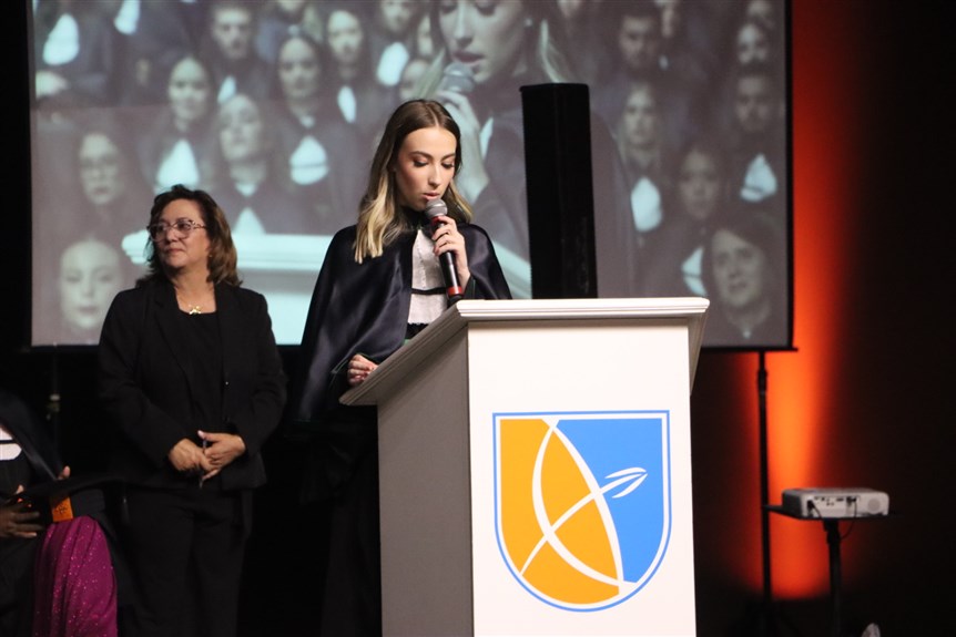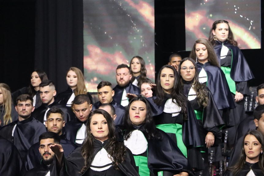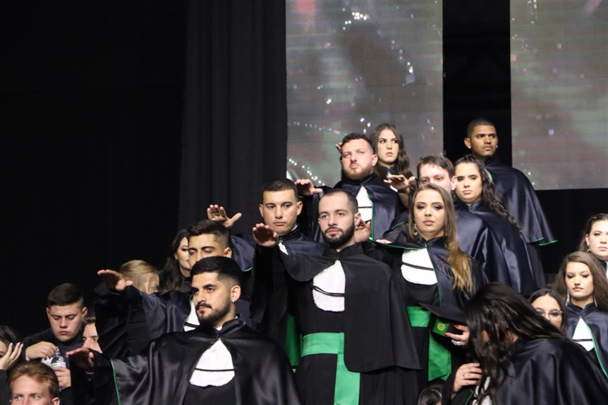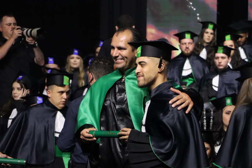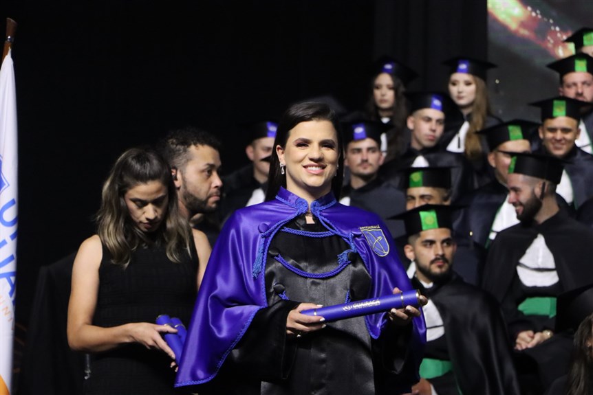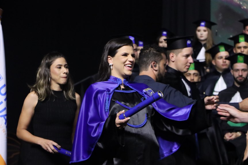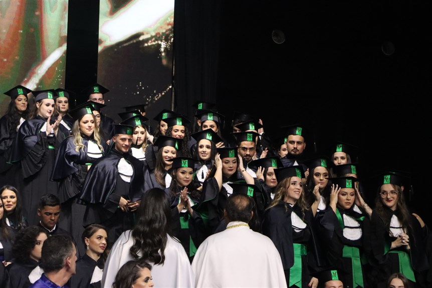 Os graduados, trajados com suas becas e capelos com cores respectivas dos seus cursos, atravessaram o palco para receber os diplomas que simbolizam o resultado de anos de aprendizado e comprometimento. Além da celebração, a Colação foi marcada por homenagens sinceras aos professores e aos funcionários que desempenharam um papel fundamental na jornada acadêmica dos graduados.
