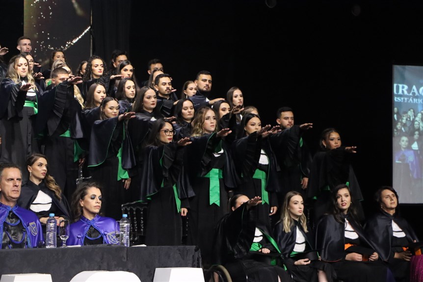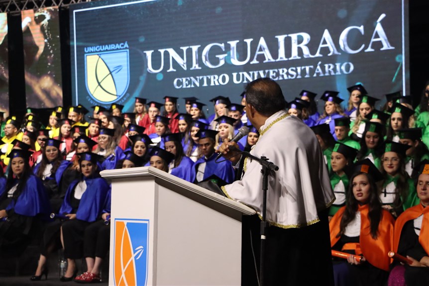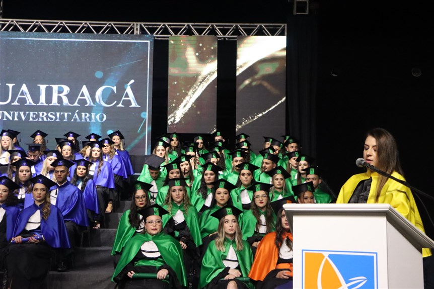 Durante a cerimônia, os cursos foram destacados individualmente, com todos fazendo um juramento e ressaltando as características de cada área do conhecimento. o Reitor da UniGuairacá Centro Universitário, Prof. Ms. Juarez Matias Soares discursou mensagens de incentivo, reflexões sobre o futuro e a importância do conhecimento, deixando uma mensagem duradoura para os formandos.