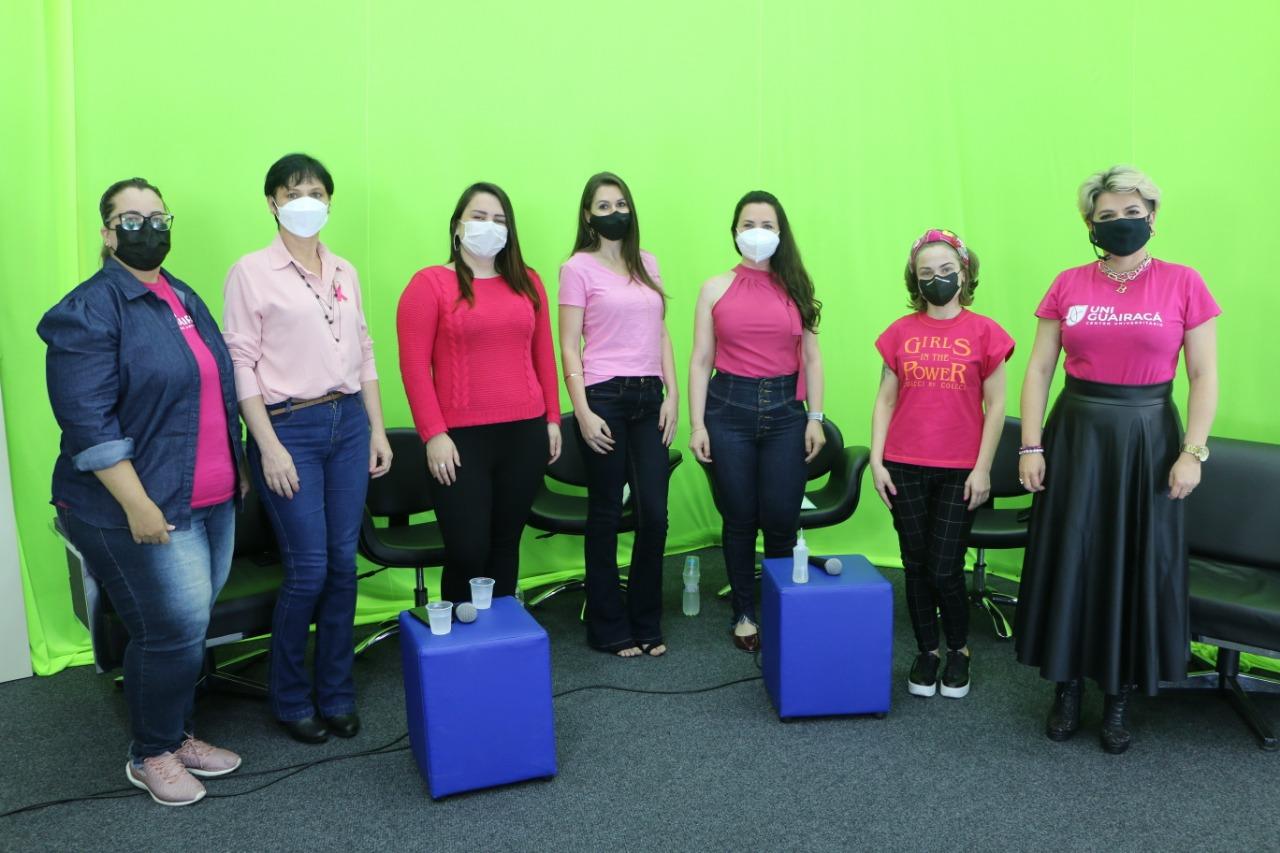 Nesta sexta-feira, 08, a UniGuairacá Centro Universitário deu início à programação do Outubro Rosa. A live ‘Saúde Mental na Pandemia’ foi apresentada pela professora Bianca Raquel Garcia Pereira e contou com a participação de diversas convidadas, parceiras da campanha este ano. O bate-papo foi sobre saúde da mulher, cuidado e saúde mental na pandemia.