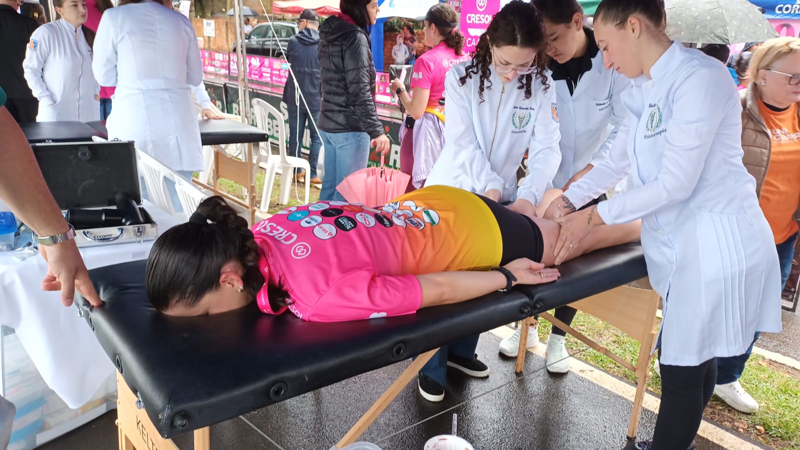 No sábado (25), os alunos estiveram em uma ação de saúde para mulheres na Paróquia do Divino Espírito Santo. Já no domingo (26), os estudantes do curso Fisioterapia, atenderam os atletas da Corrida do Outubro Rosa organizada pela OAB de Guarapuava.