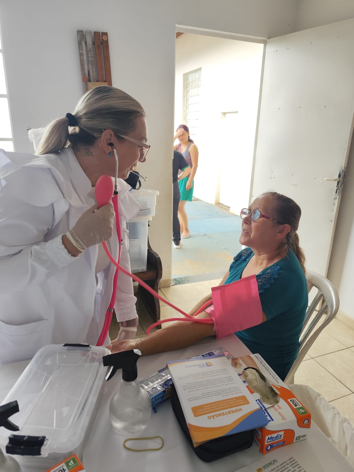 Alunos de Biomedicina, Enfermagem, Fisioterapia e Odontologia desenvolveram ações de saúde para os idosos participantes do Projeto de Acolhimento do ADRA no Jardim das Américas.